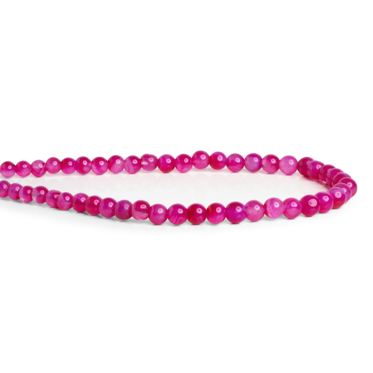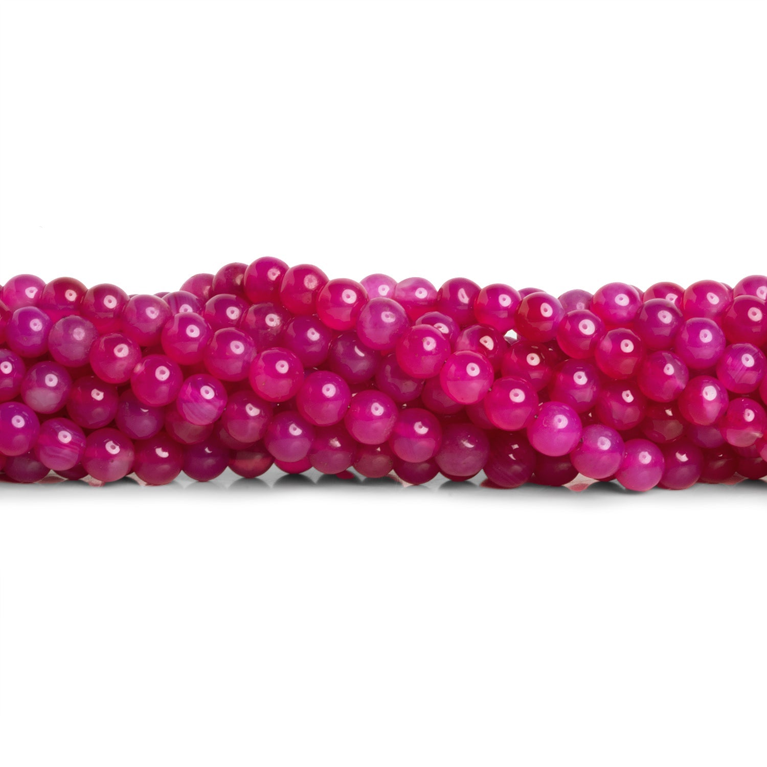 Introducing our incredible Fuchsia Hot Pink Chalcedony plain rounds. These neon hot pink pieces show off a consistent color palette practically unmatched in its vibrancy. Expect a somewhat darker, milky translucent bead body that varies in size slightly both on and between strands. Beads are color enhanced.