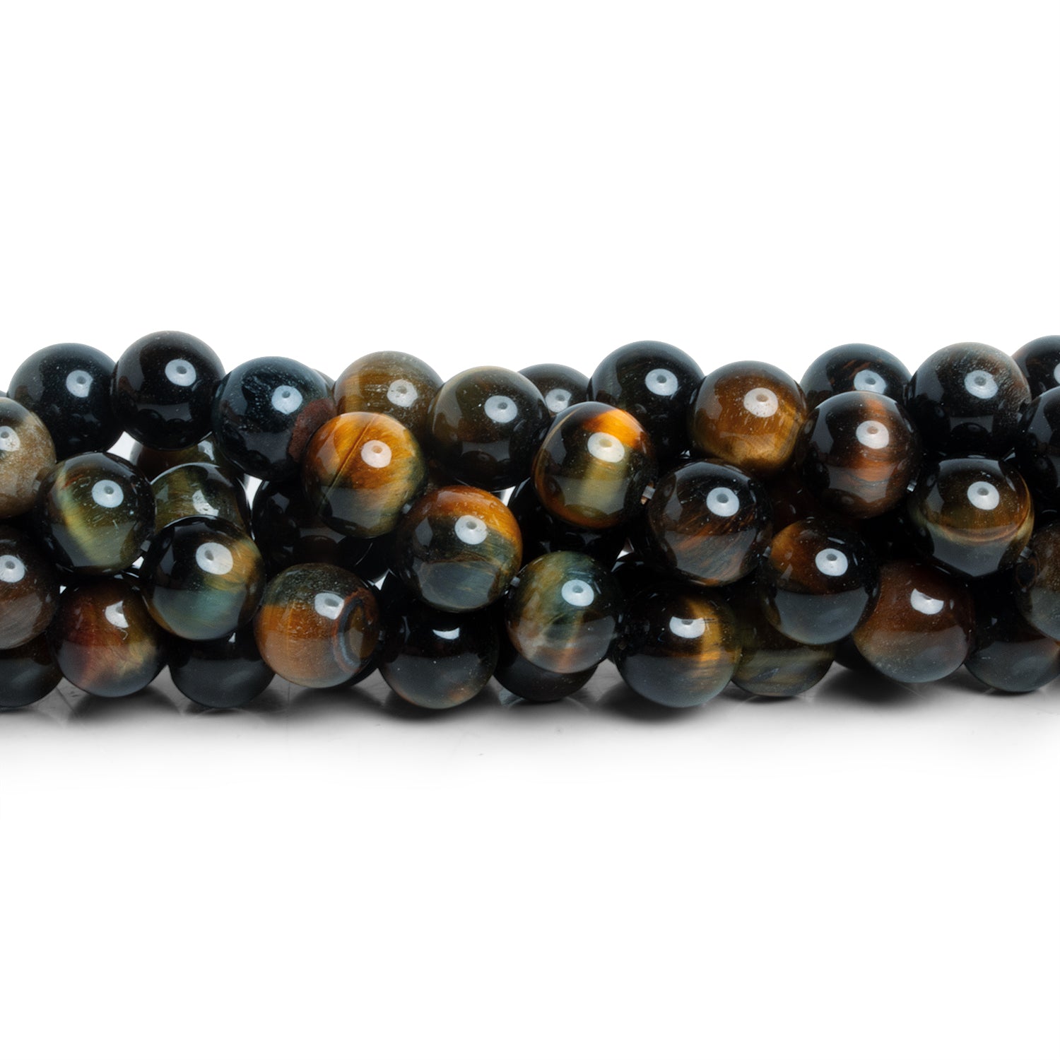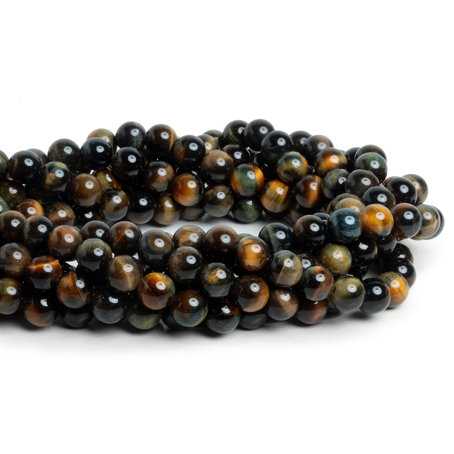 Beads measure about 8mm in diameter. These specially curated strands feature an alluring Tiger's Eye melange that incorporates dark bodied gems in hues ranging from the traditional golden red through subtle blues, greys and greens. These striking pieces are brimming with the stone's signature chatoyancy or Cat's Eye effect that makes a notable impression when contrasted with the dark surrounding bead body. These unique offerings are ideal for use in a wide range of Jewelry designs from bracelets to necklaces and earrings.