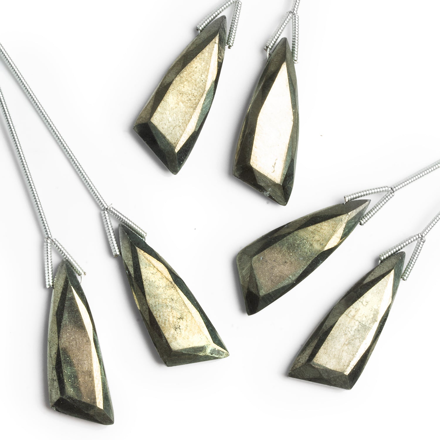 These Pyrite Fancy Shape Focal Beads showcase the metallic luster and natural glamour of pyrite in sharply faceted silhouettes. With their geometric taper and mirror-like golden sheen, each bead reflects light with a bold, modern edge that adds instant drama to any design.