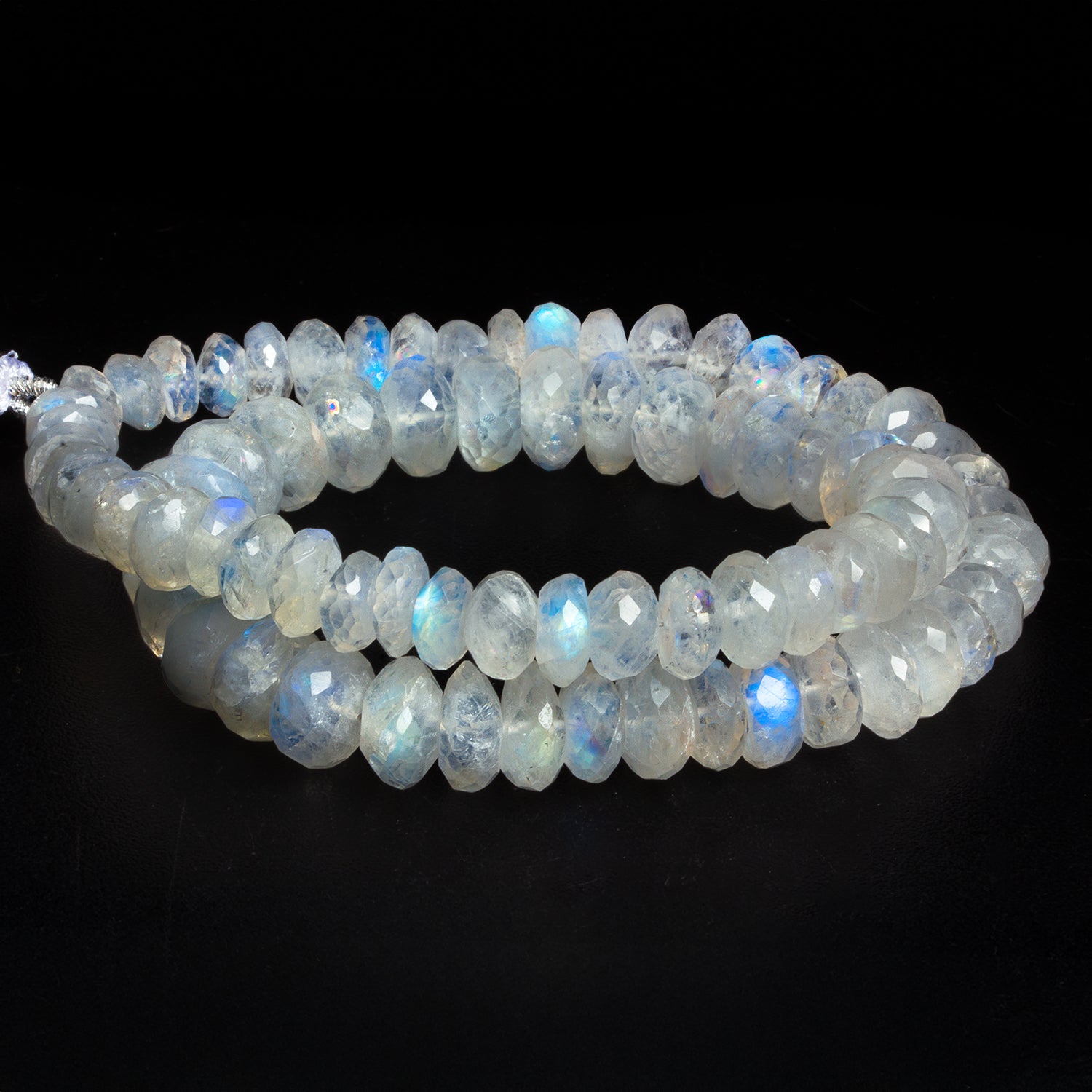 Radiating ethereal beauty, these Rainbow Moonstone Faceted Rondelle Beads shimmer with flashes of electric blue, soft violet, and pearly iridescence. Measuring a substantial 8mm to 12mm, each bead is expertly faceted to highlight the gemstone’s signature adularescence—the glowing, mystical sheen that makes moonstone so captivating. Their generous size and high clarity ensure maximum visual impact, whether used as bold focal pieces or strung into luminous, one-of-a-kind strands.