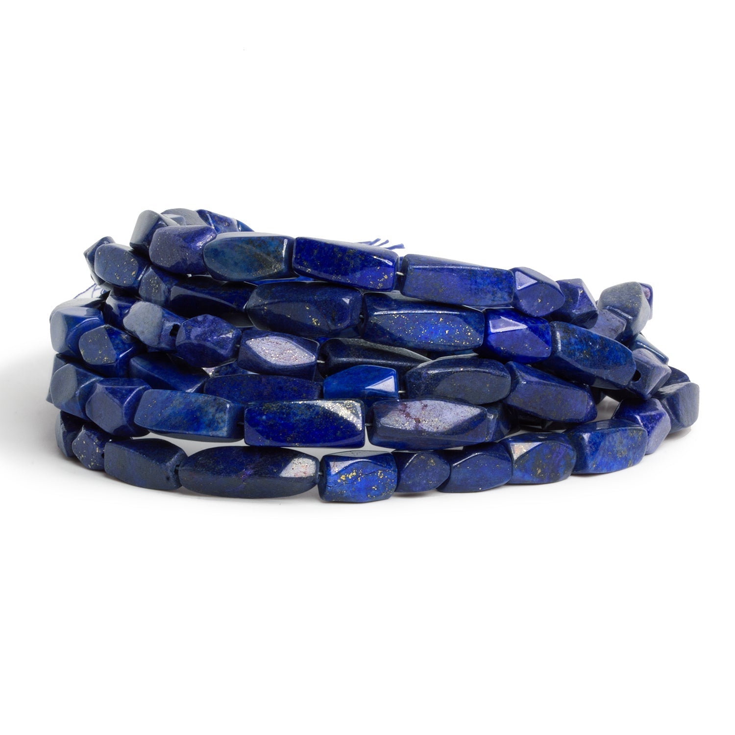These Lapis Lazuli Cornerless Rectangle Beads showcase the rich ultramarine blue that has made this gemstone prized for millennia, accented with the natural golden flecks of pyrite that add warmth and depth. Ranging in size from 8x6mm to 15x7mm, each bead is cut into a sleek cornerless rectangle that highlights the stone’s natural variations and polished luster. Their elongated, softly faceted form makes them versatile for both structured and free-form jewelry designs, lending a sophisticated yet organic aesthetic.