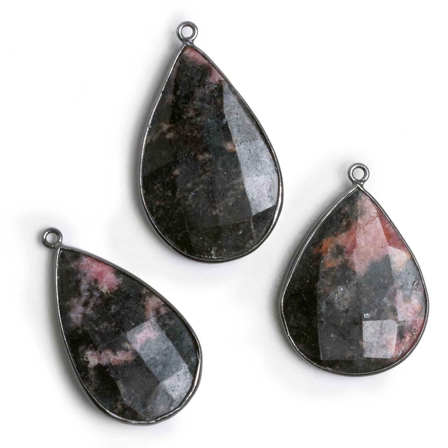 32x24mm Black Gold Bezeled Rhodonite Pear Pendant 1 piece