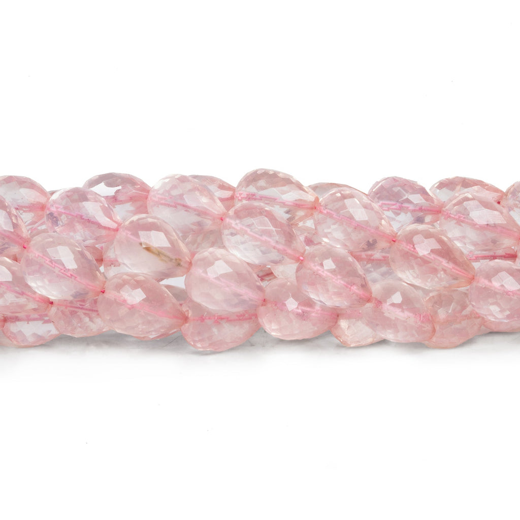 9 - 12mm Rose Quartz Faceted Hearts 8 inch 45 beads - The Bead Traders