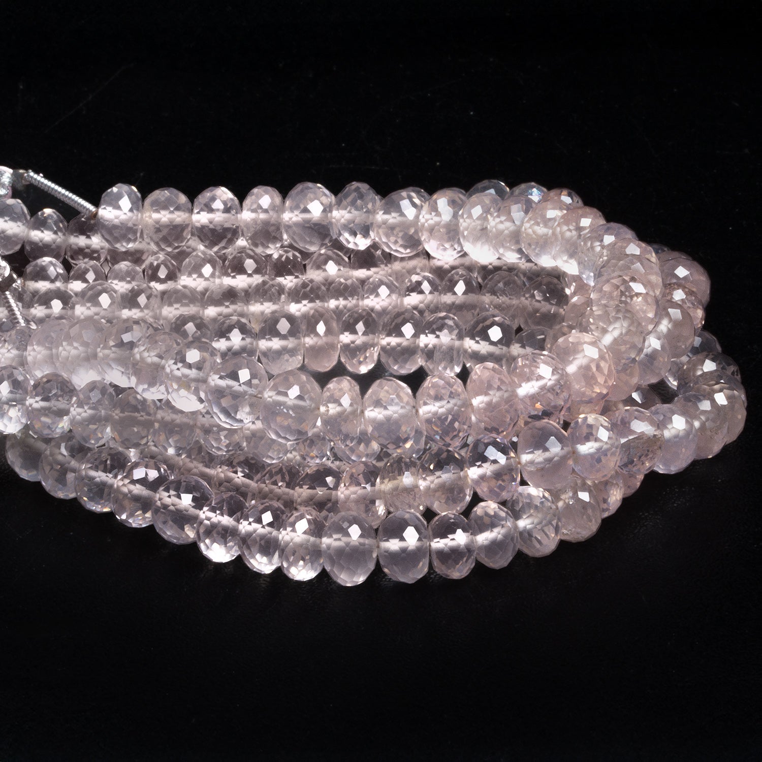 These Rose Quartz Faceted Rondelle Beads radiate a gentle blush hue, capturing the soft elegance of natural rose quartz in each hand-faceted bead. Measuring between 6mm and 7mm, their petite, symmetrical rondelle shape makes them ideal for detailed and refined jewelry creations. The facets catch and reflect the light beautifully, enhancing the stone’s natural translucence and delicate color, which ranges from the palest pink to subtle pastel rose.