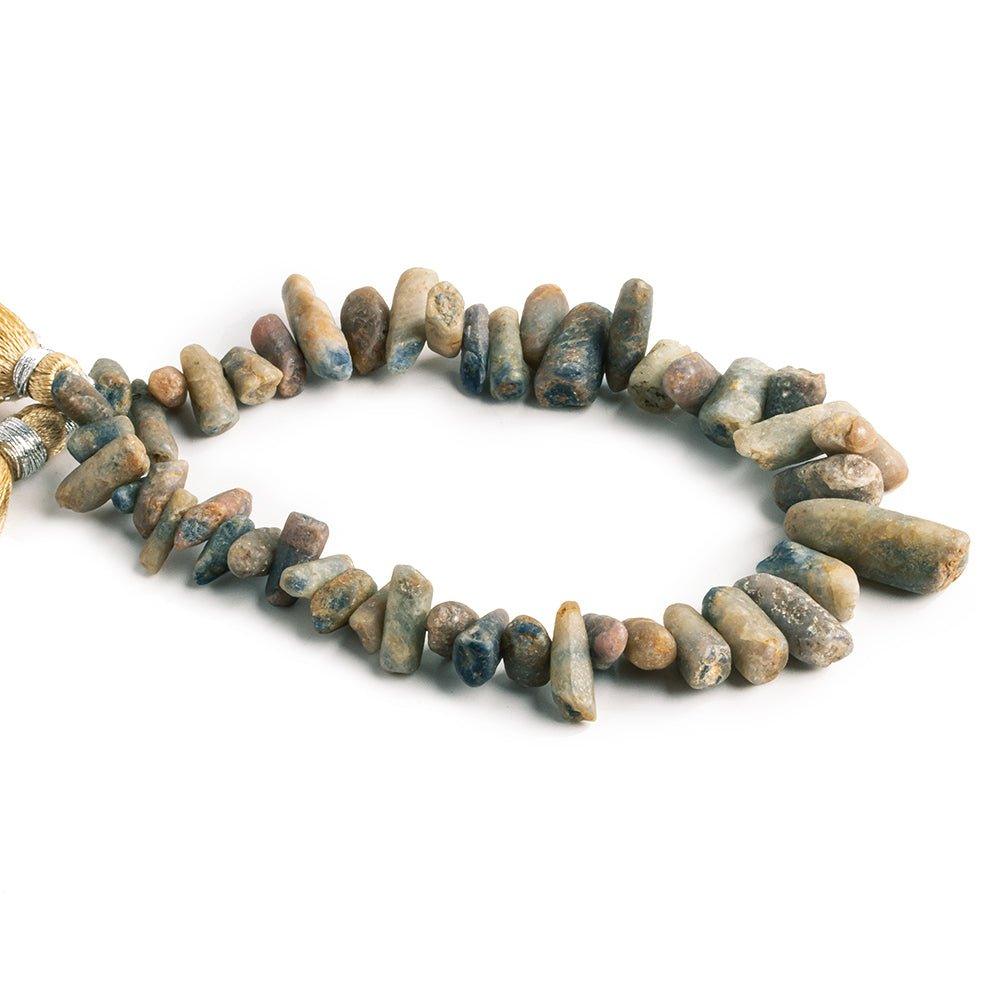 Discover the raw beauty of natural sapphire with these hand-selected tumbled nugget beads, measuring between 7x3mm and 15x7mm. Their organic shapes and earthy, unrefined textures highlight the natural character of sapphire, offering a striking mix of blue, grey, and subtle golden-brown tones. Each bead is unique, showcasing the rugged appeal of the gemstone in its truest form.