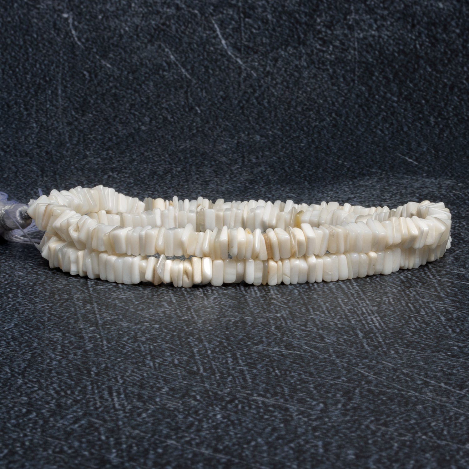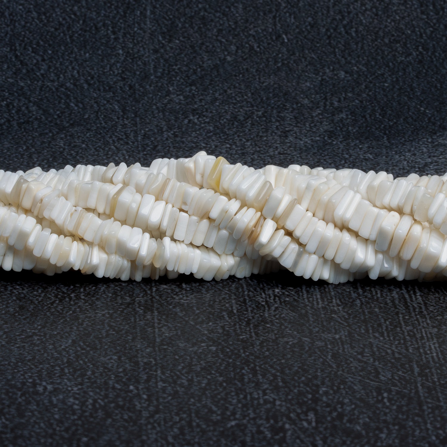 Explore the wonders of our bright white Shell Square Heishi beads! These ivory toned beauties show off exciting, opaque white bead bodies that vary in both size and thickness on the strand. Expect some warm accents as well as the subtle striated textures that add to Shell beads' natural allure.