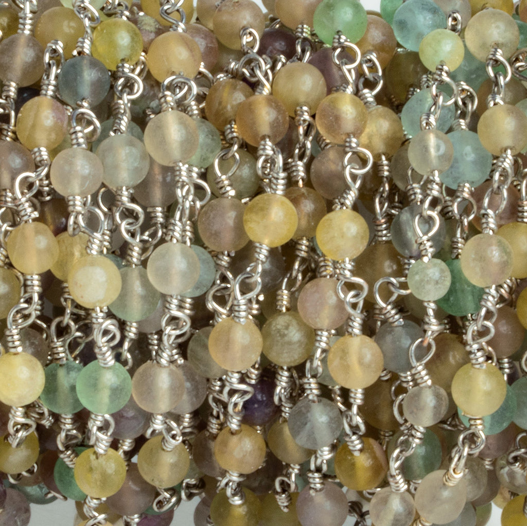 3.5mm Fluorite Round Silver Chain 30 Beads - The Bead Traders