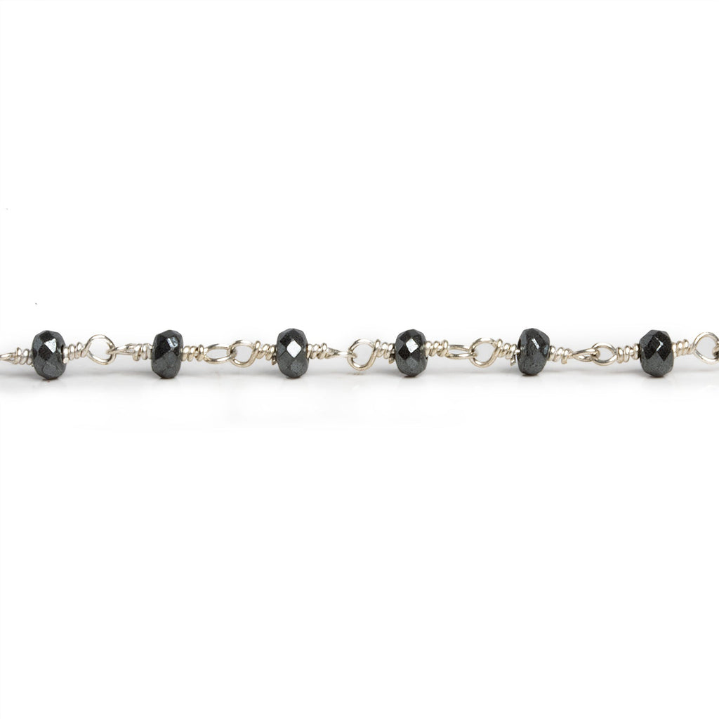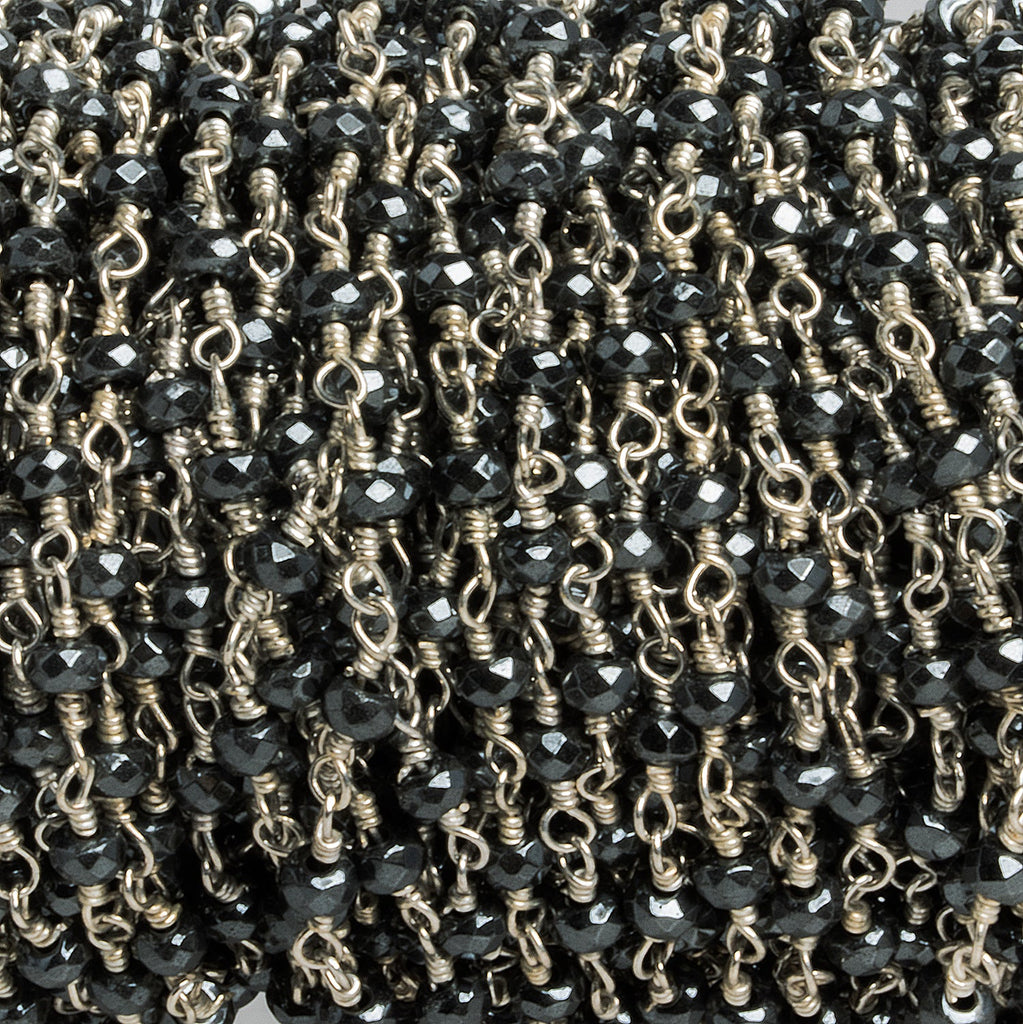 3mm Hematite Faceted Rondelle Silver Chain 41 beads - The Bead Traders