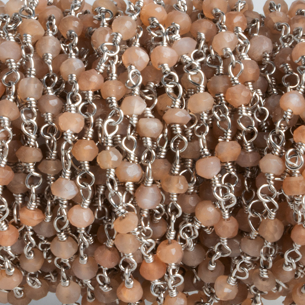 3mm Peach Moonstone Rondelle Silver Chain 39 Beads - The Bead Traders
