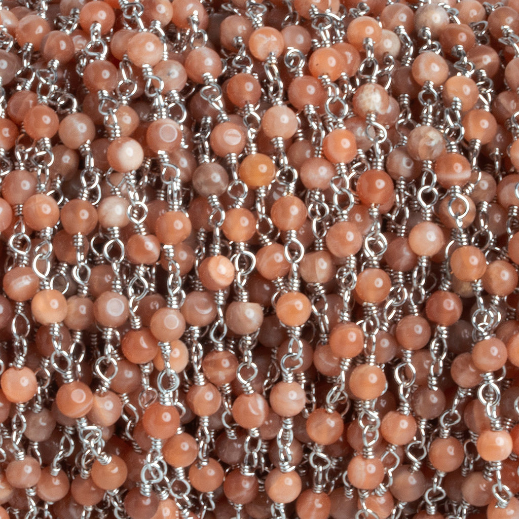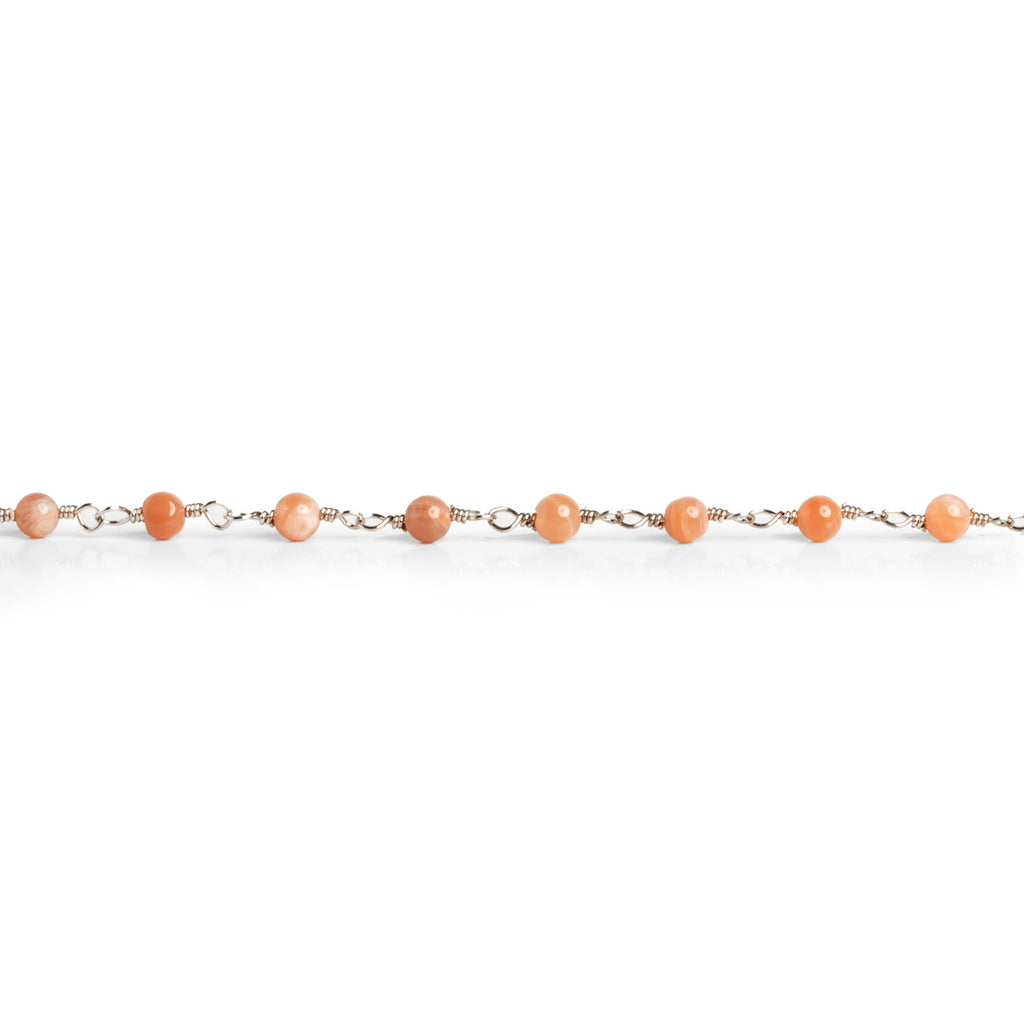 3mm Peach Moonstone Round Silver Chain 33 beads - The Bead Traders