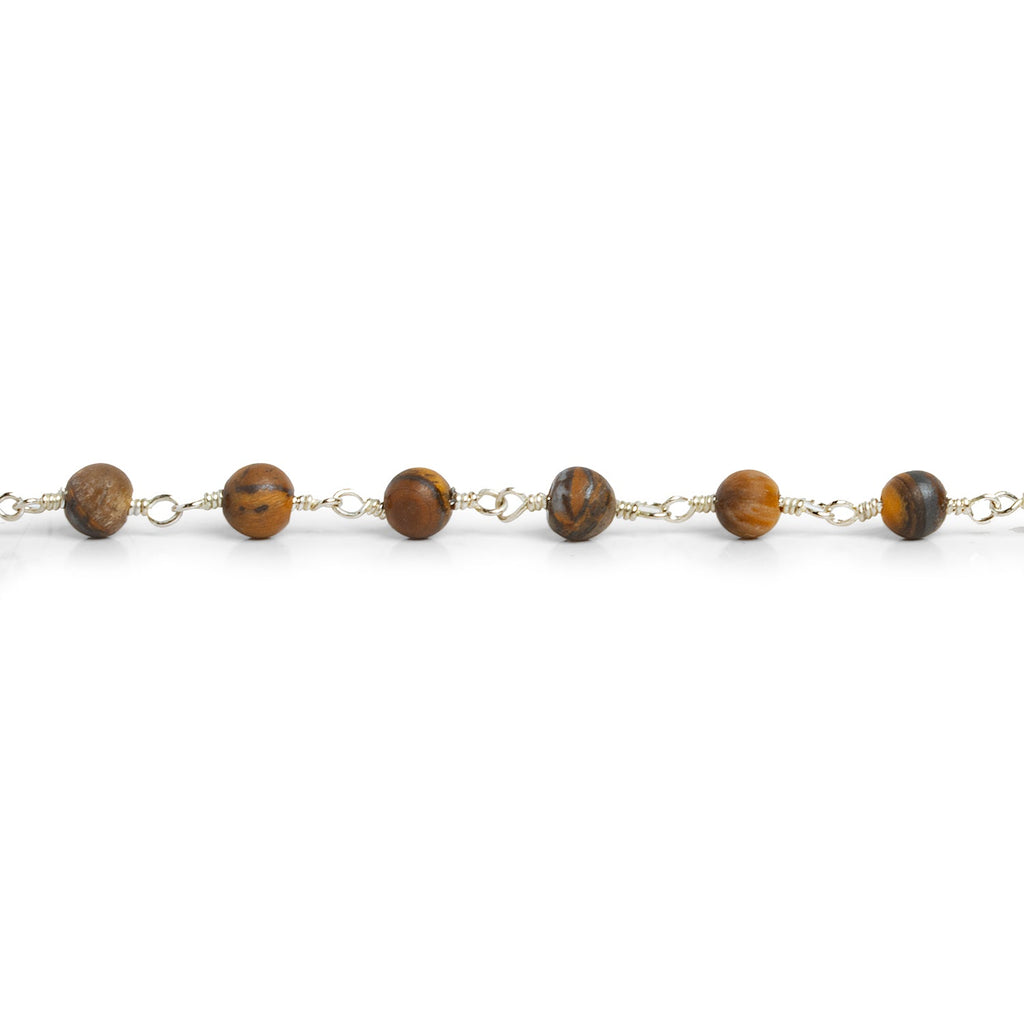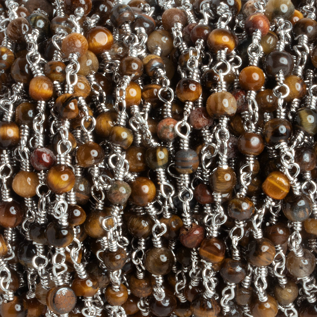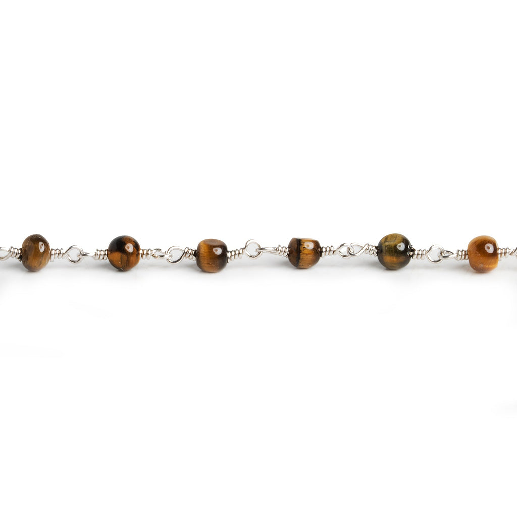 4mm Tiger's Eye Rondelle Silver Chain 29 beads - The Bead Traders