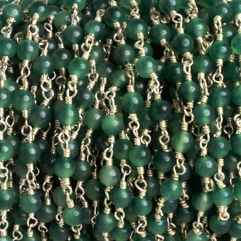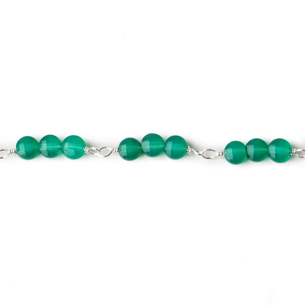 4mm Green Onyx Faceted Coin Trio Silver Chain 54 beads - The Bead Traders