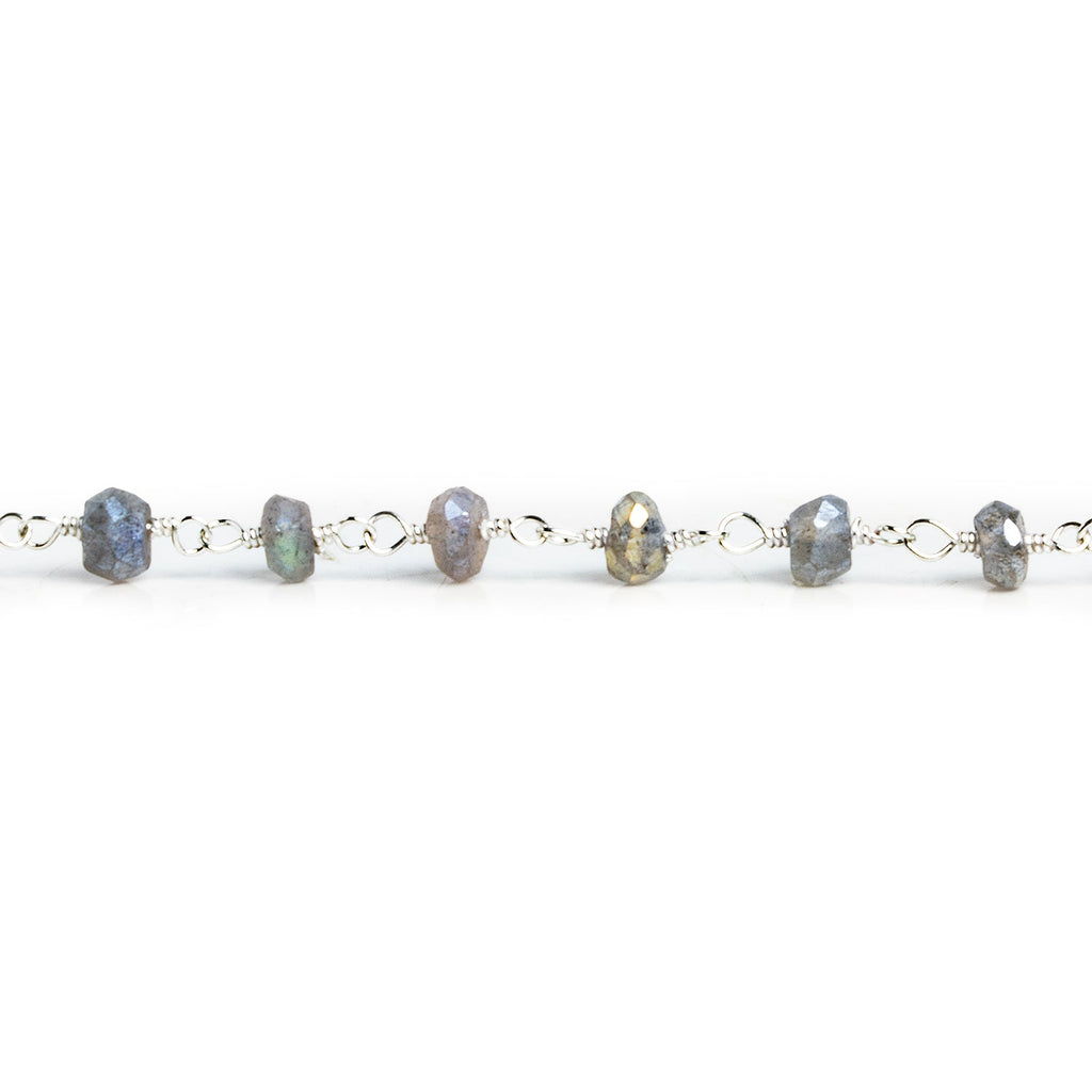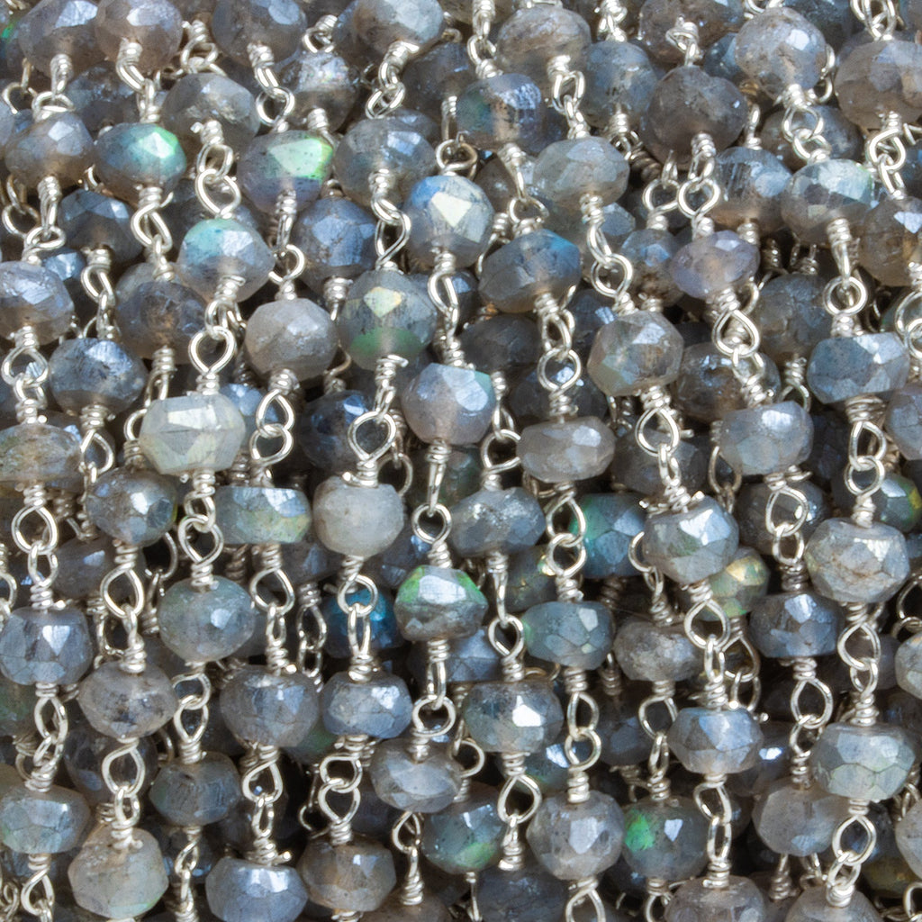 4mm Mystic Labradorite faceted rondelle Silver Chain 37 beads - The Bead Traders