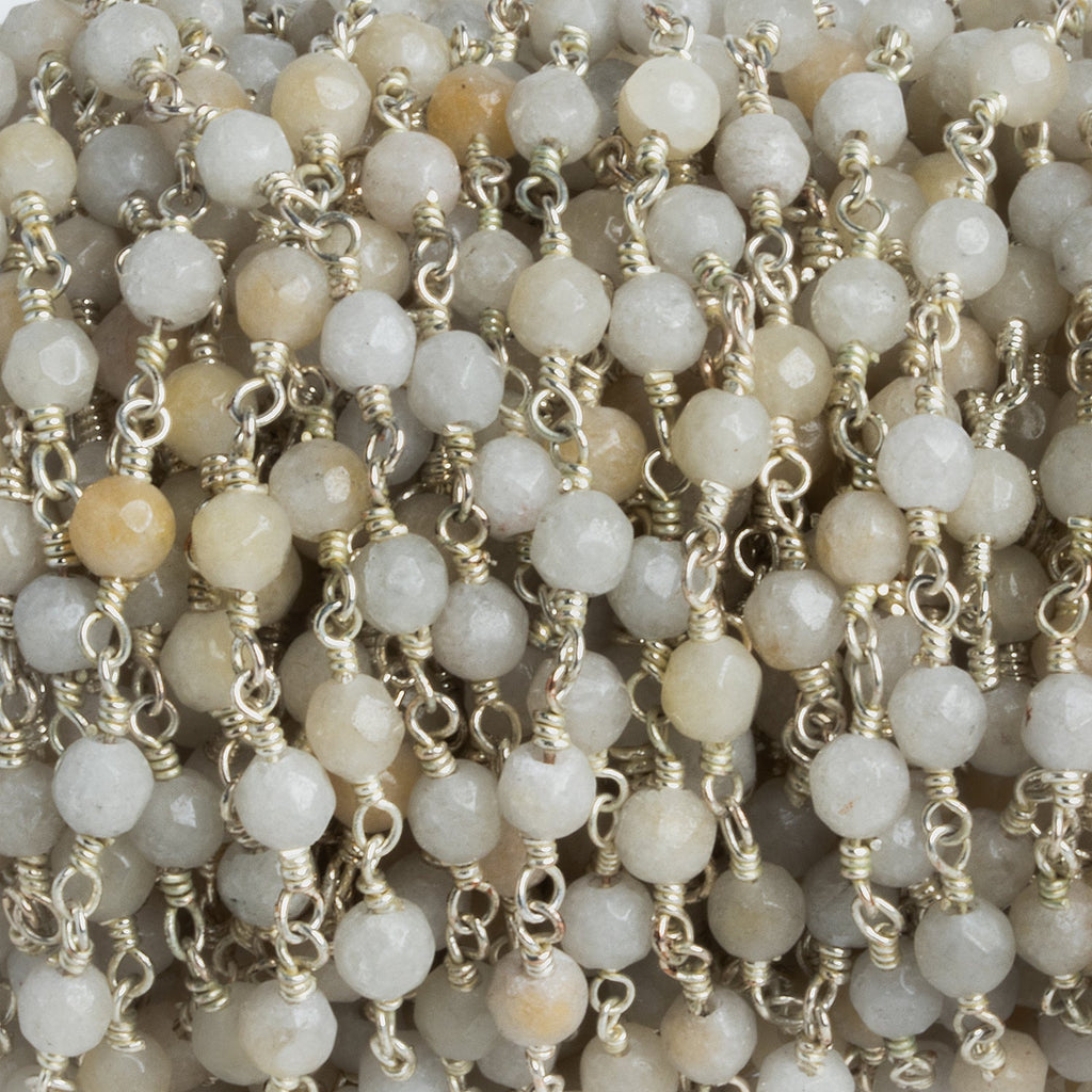 3mm Grey Moonstone Rondelle Silver Chain 36 beads - The Bead Traders
