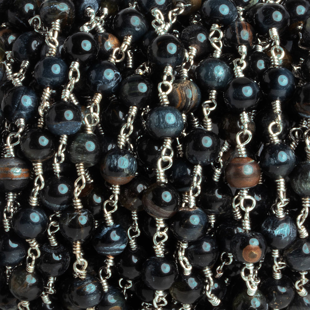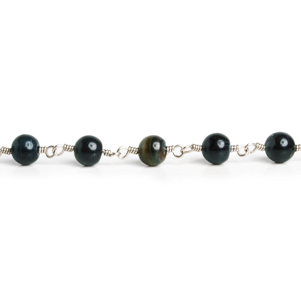 5mm Black Tiger's Eye Round Silver Chain 26 beads - The Bead Traders