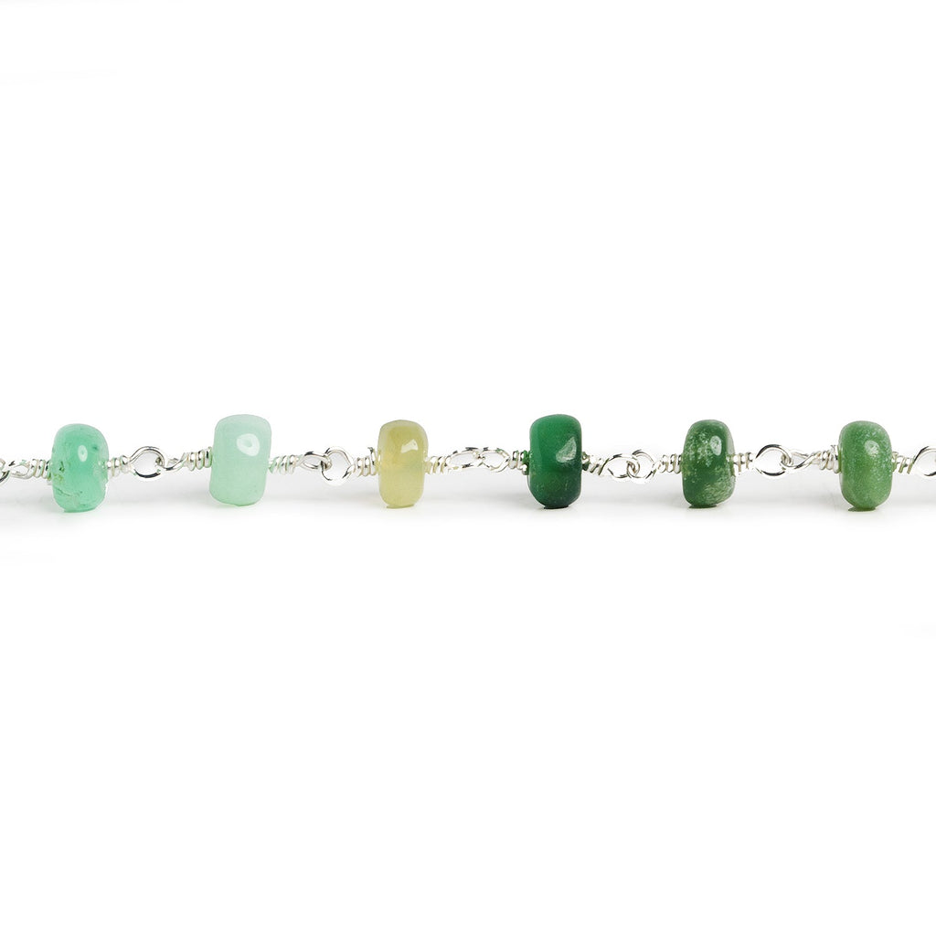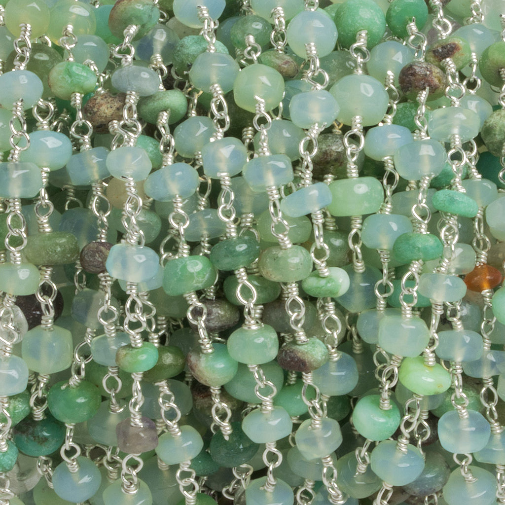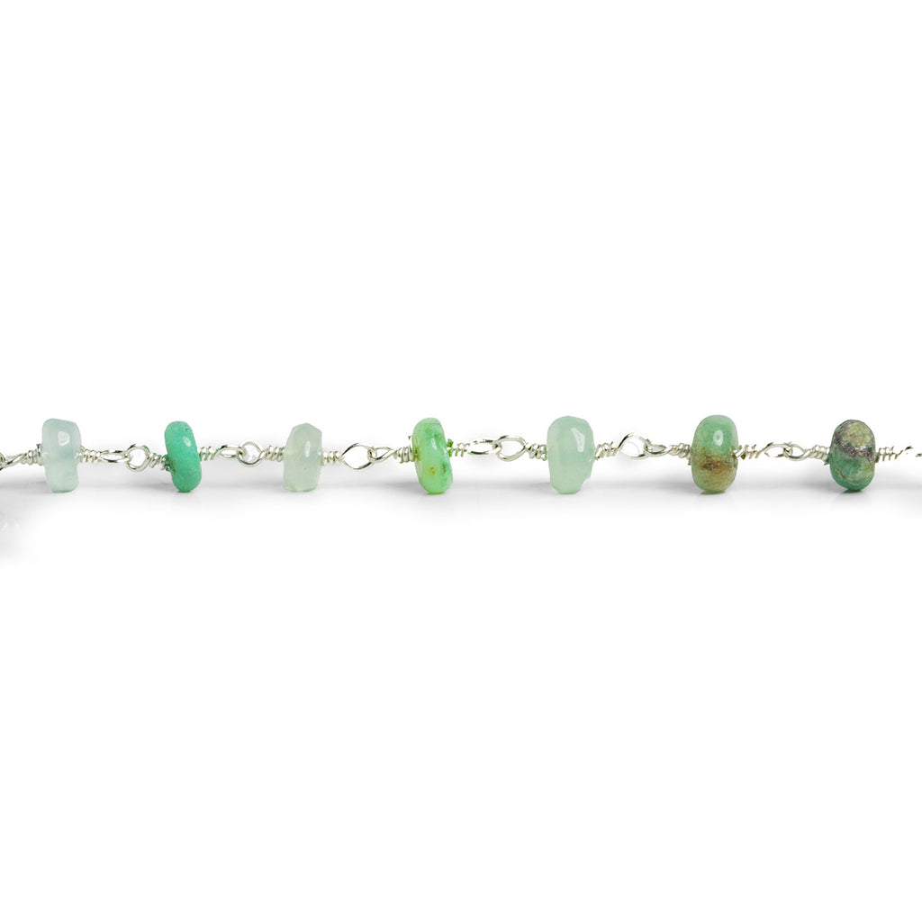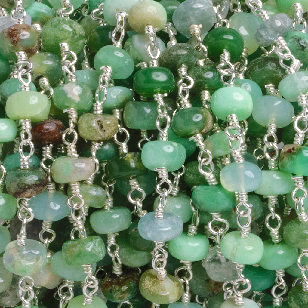 7.5mm Chrysoprase Rondelle Silver Chain 27 beads - The Bead Traders