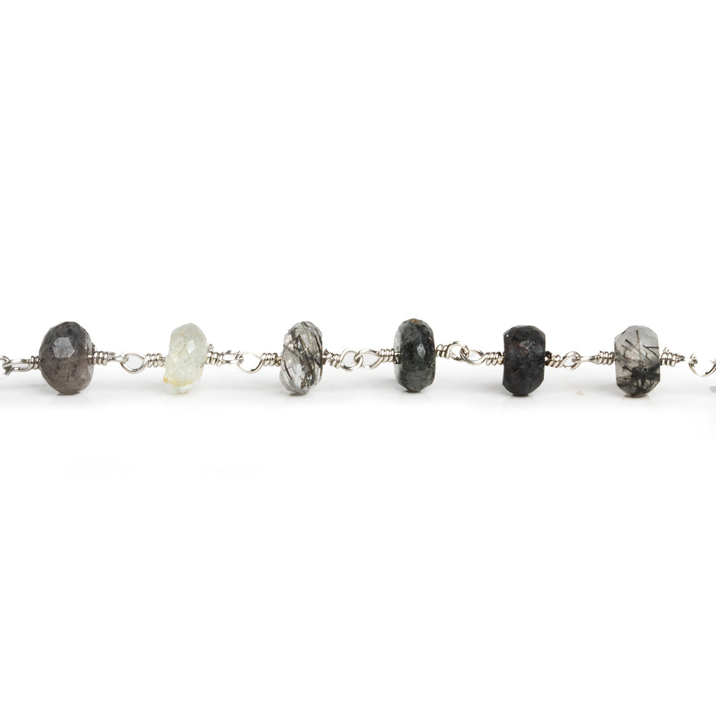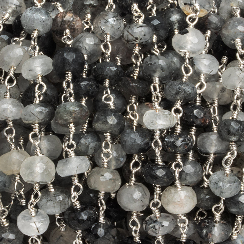 6 - 7mm Tourmalinated Quartz Rondelle Silver Chain 32 beads - The Bead Traders