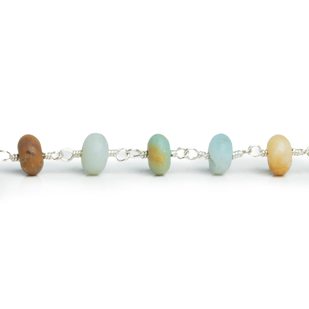 8mm Matte Amazonite Rondelle Silver Chain 24 beads - The Bead Traders