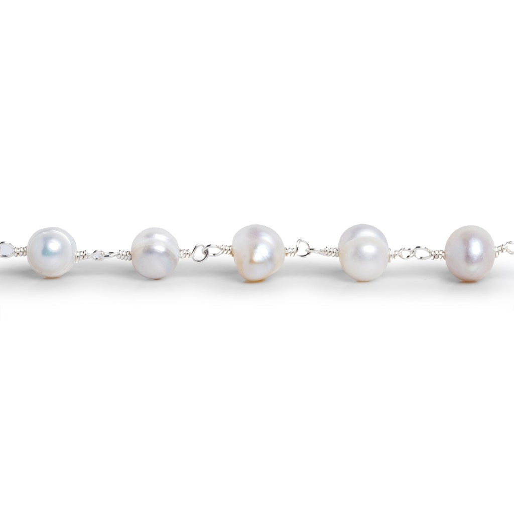 7x6mm Peach Baroque Pearl Silver Chain 25 beads - The Bead Traders