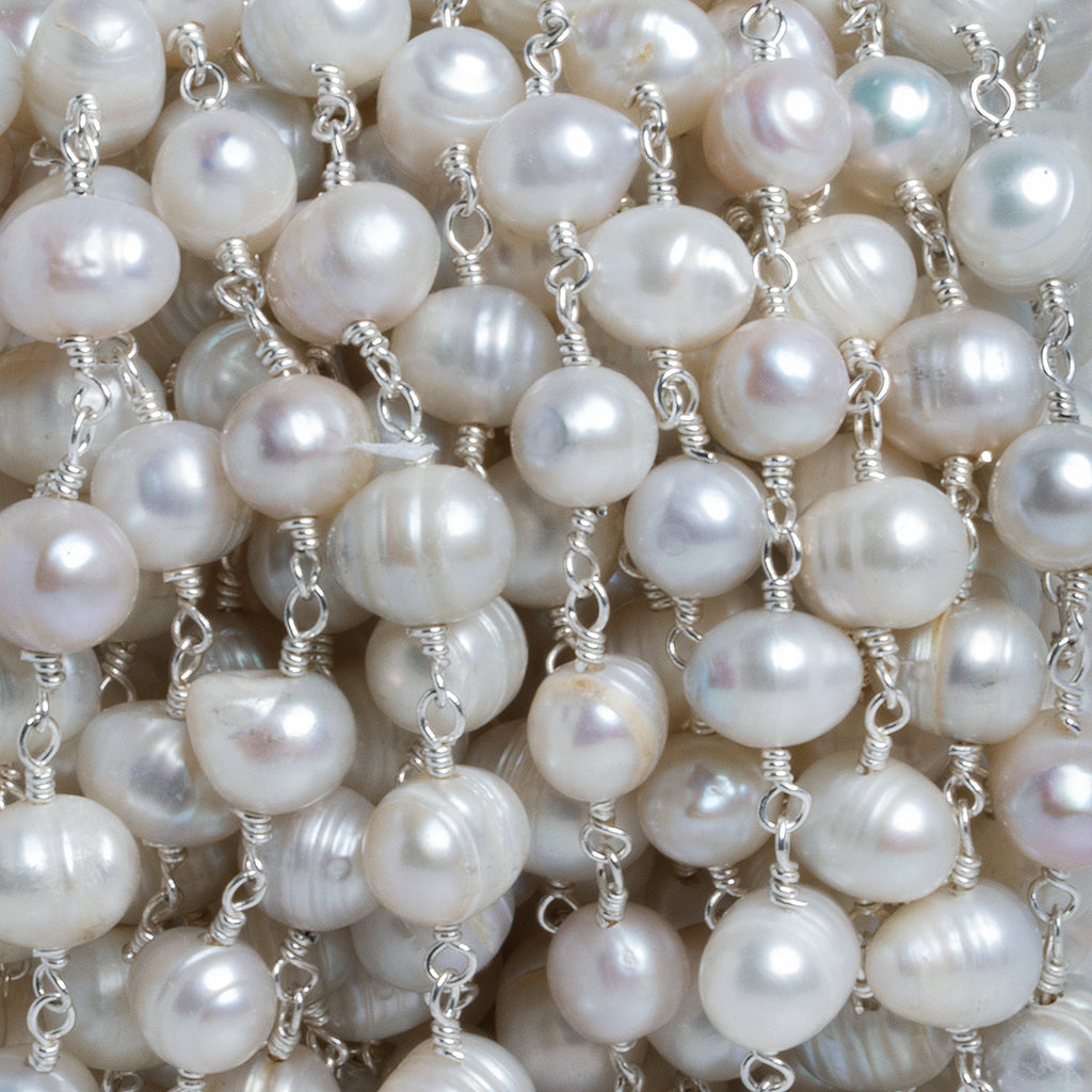 6.5x5mm Peacock Baroque Pearl Silver Chain 28 beads - The Bead Traders