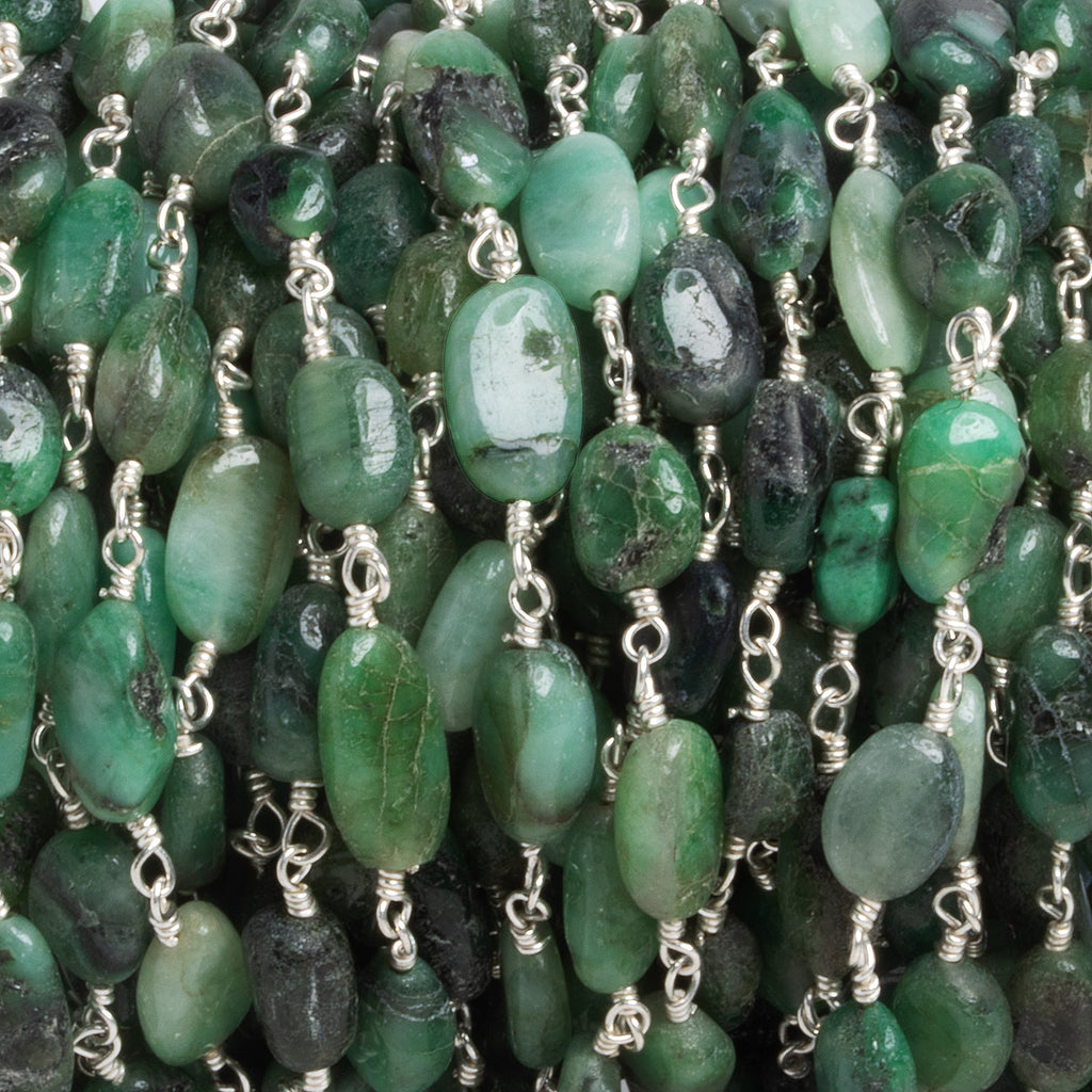 9mm Emerald Rondelle Silver Chain 24 beads - The Bead Traders