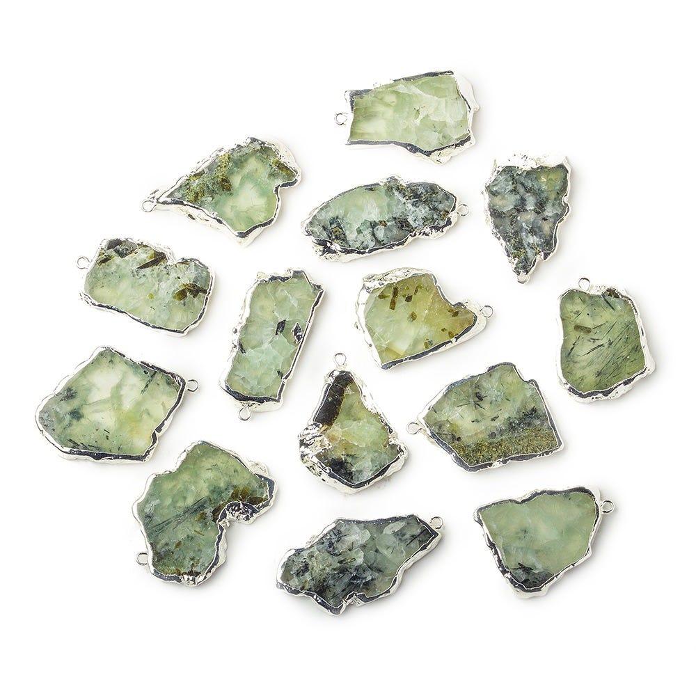 30x22mm-37x28mm Silver Leafed Prehnite Natural Slice Focal Bead 1 Piece