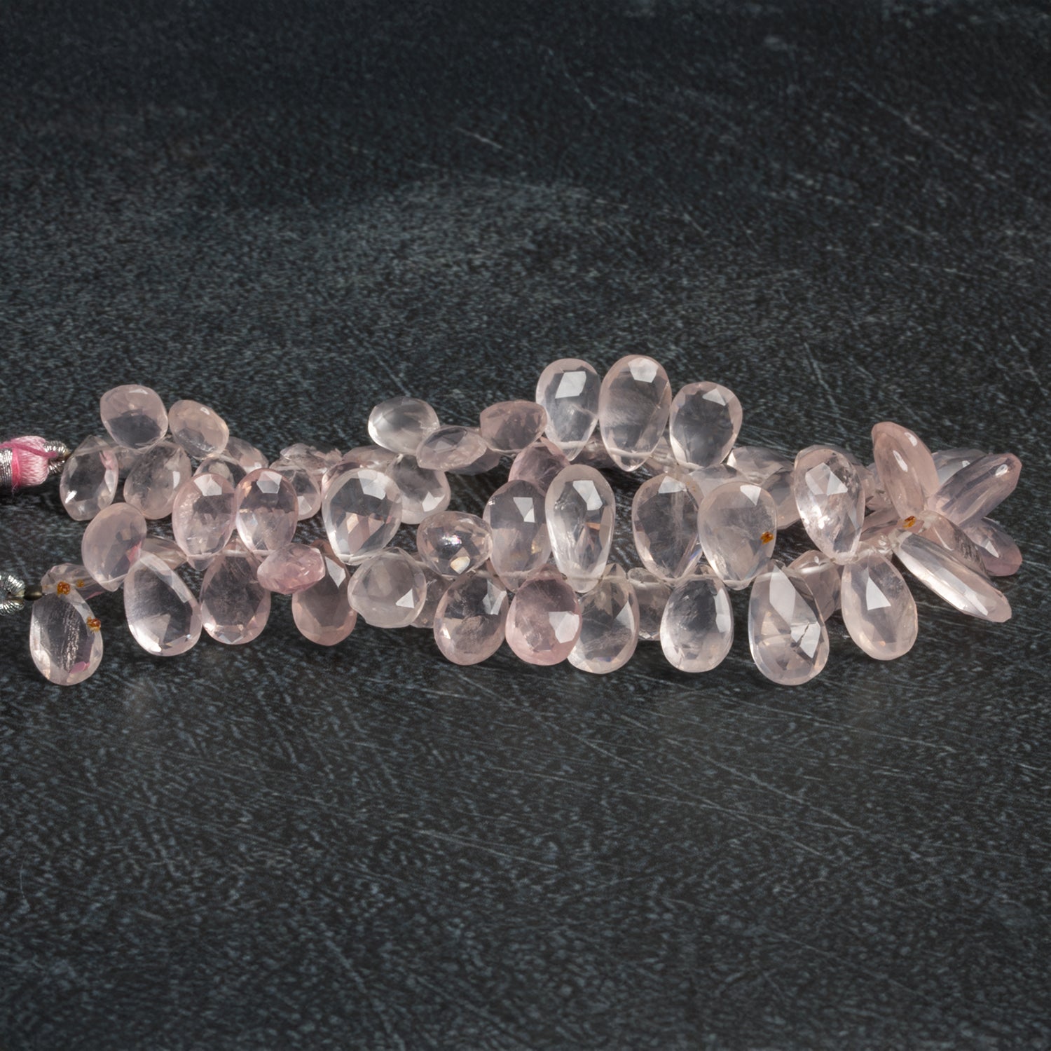 Beads measure from about 9x6mm to 14x10mm. Explore the stunning facets of these exquisitely crafted pear beads. Our illustrious pear shape brings an air of elegance to a favorite shape worthy of the most sophisticated design concepts. These colorful Rose Quartz pieces glint with the milky clarity coveted in this sought-after gemstone. Create eye-catching necklaces, matching earrings and much more when you sit down to your next slate of jewelry designs with this specially curated strand handy!