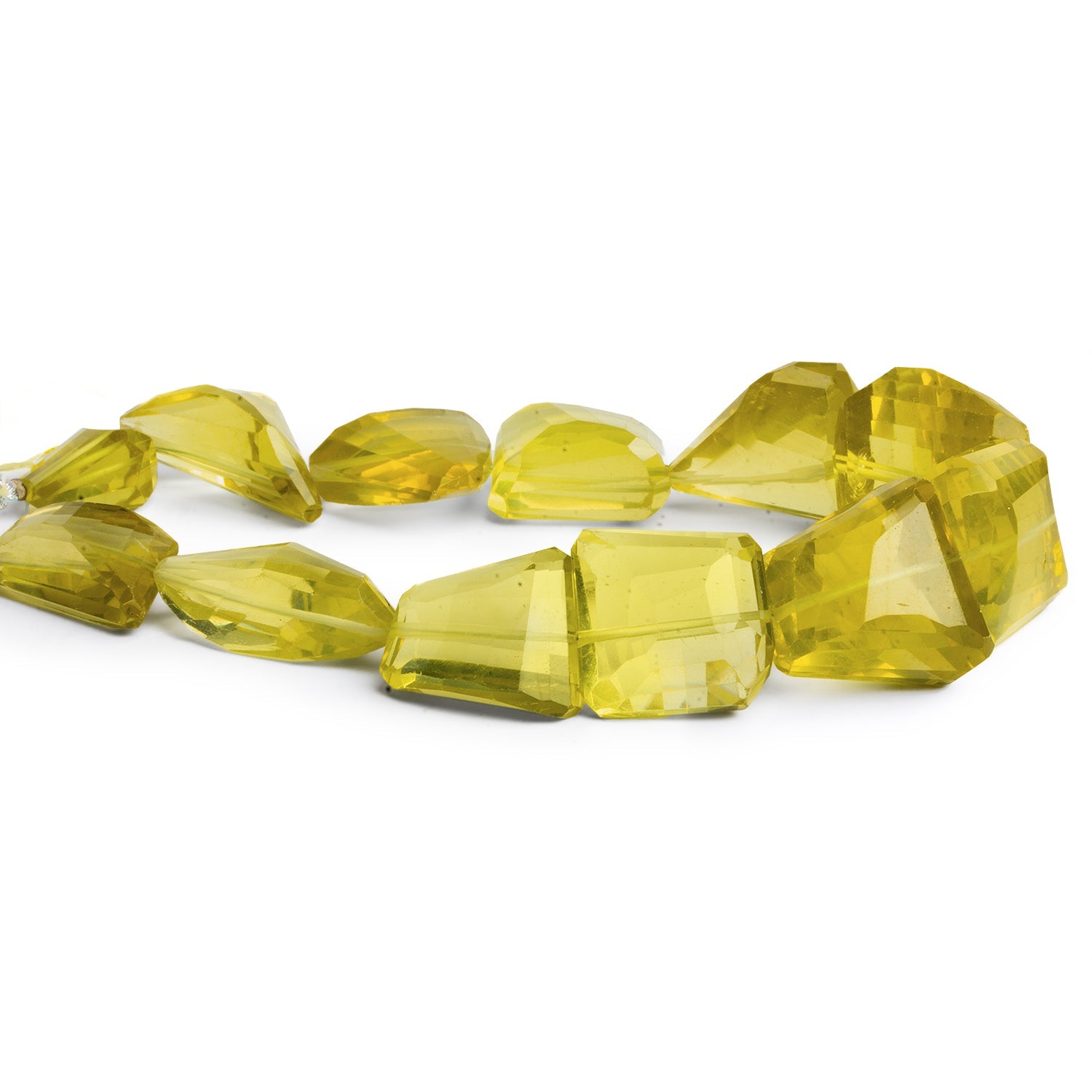 Bring bold brilliance to your designs with these Lemon Quartz Faceted Nugget Beads, averaging 21x17mm in size. Each bead is uniquely cut into chunky, angular nugget forms that highlight the vibrant, citrus-yellow glow of lemon quartz. The expertly faceted surfaces catch and reflect light beautifully, creating a radiant shimmer that instantly brightens any jewelry design. Their generous size and striking hue make them the perfect choice for statement necklaces, eye-catching earrings, or standout accents in mixed gemstone creations.