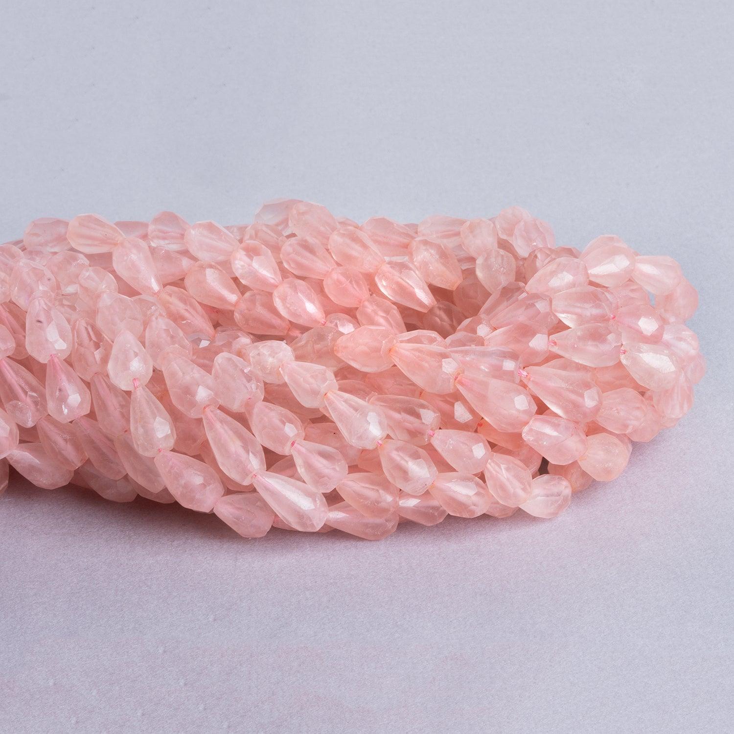12mm Rose Quartz Faceted Straight Drilled Teardrop Beads, 14 inch