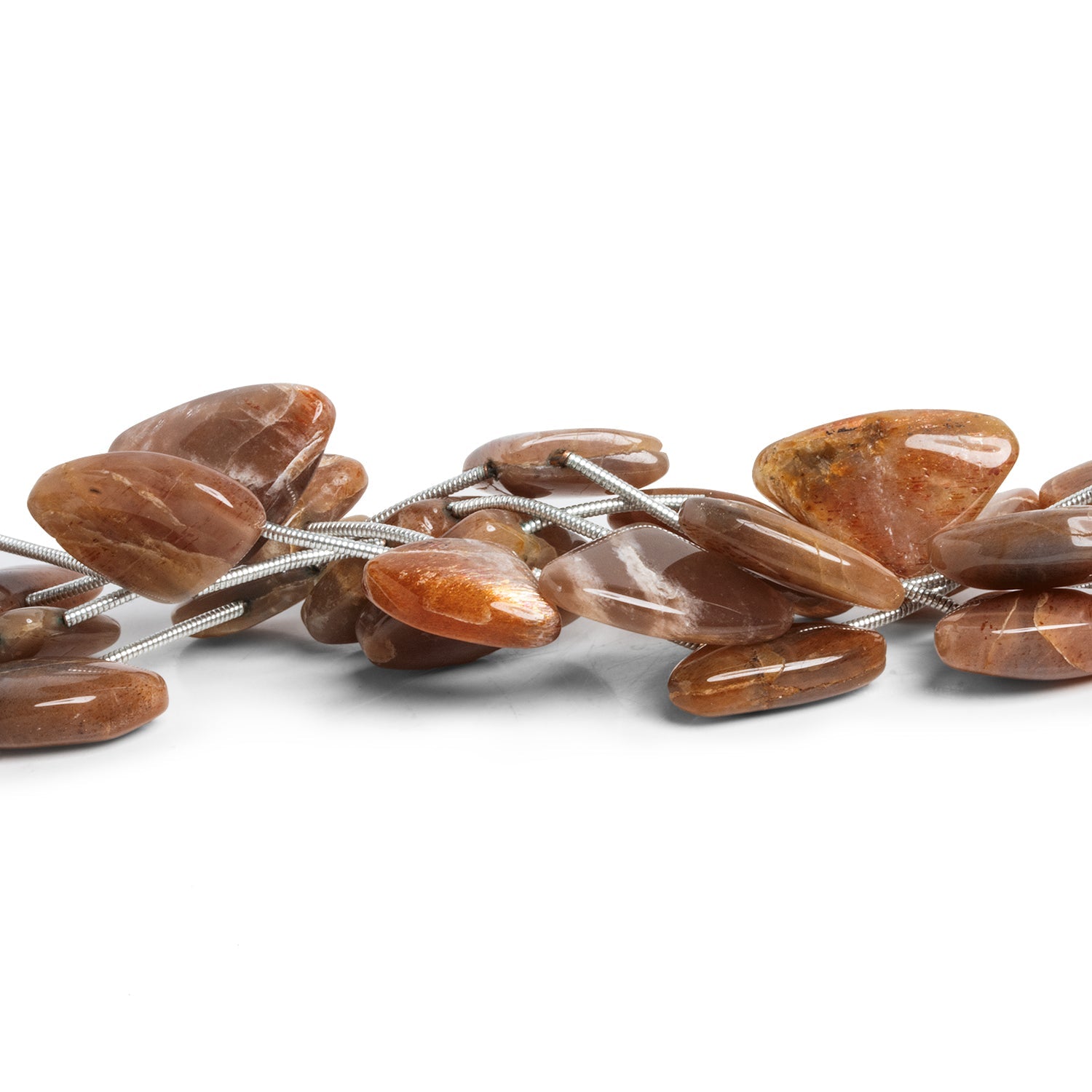 Beads average about 18x14mm. These unique beads show off an alluring fan shape crafted from beautiful Sunstone beads. Expect plenty of Sunstone's signature sparkle in these curated offerings, perfect for use in necklaces, earrings, bracelets and more!