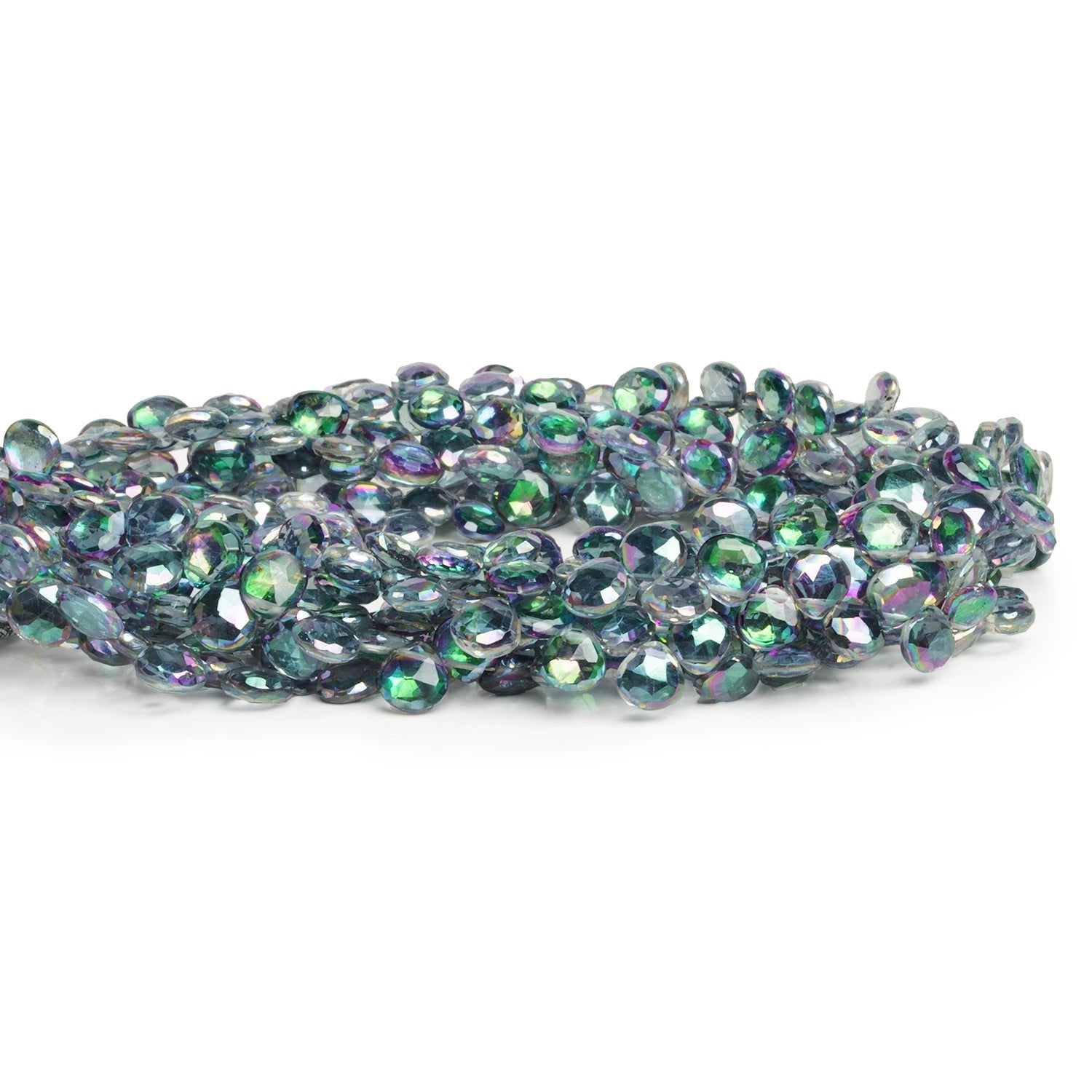 Beads measure about 5mm to 6mm in diameter. Discover the enchantment of our Mystic Topaz Faceted Heart Beads, where our signature mystic coating transforms each gem into a captivating display of color. These topaz hearts shimmer with flashes of vibrant green and purple, adding a dynamic and almost ethereal quality to each bead. The faceted surfaces amplify the light play, creating a lively, shifting sparkle that enhances any jewelry design. Ideal for adding an eye-catching, mystical element, these beads bring a magical touch to elegant and contemporary creations alike. Our premium offerings are destined to dazzle in necklaces, earrings, bracelets and more!