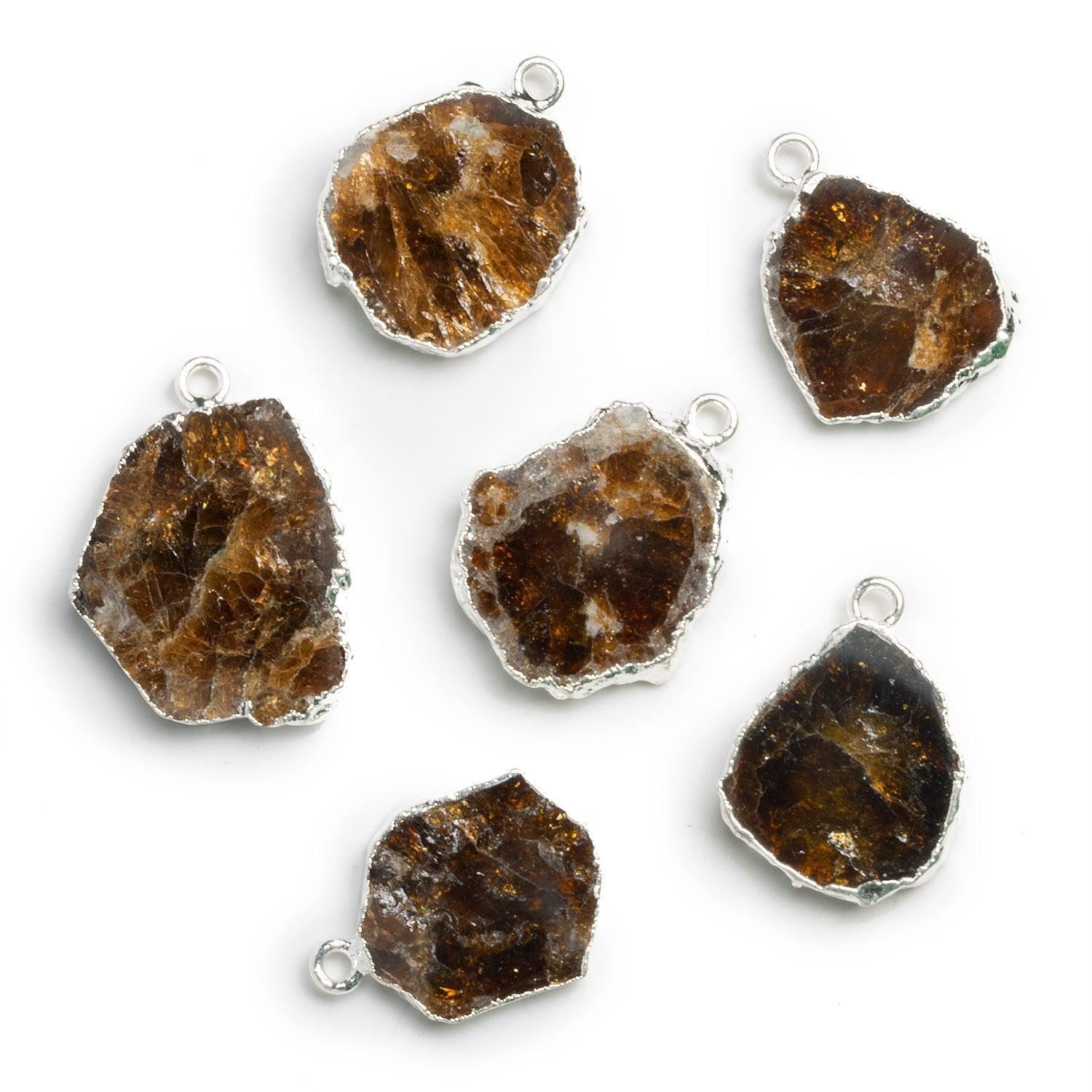27x20mm Silver Leafed Light Chocolate Tourmaline Slice Pendant