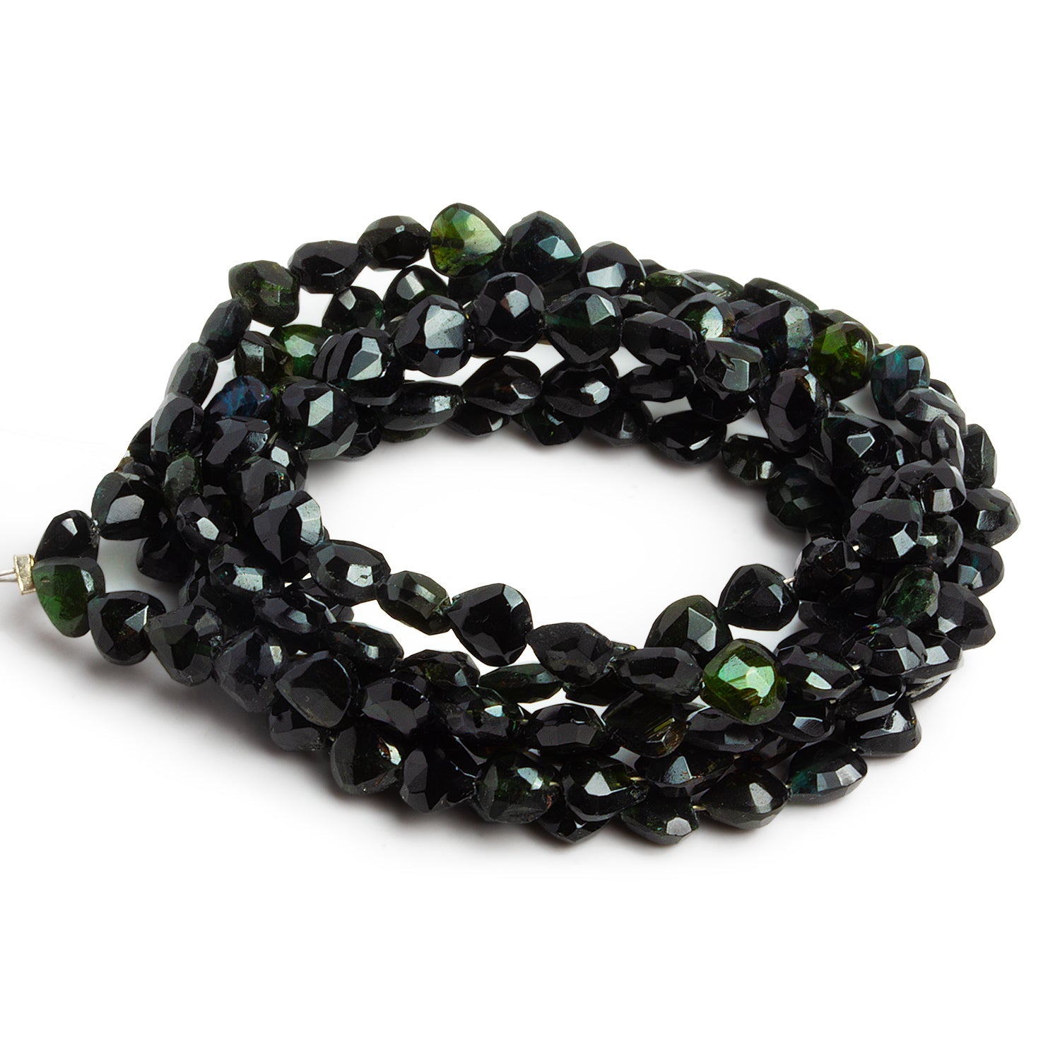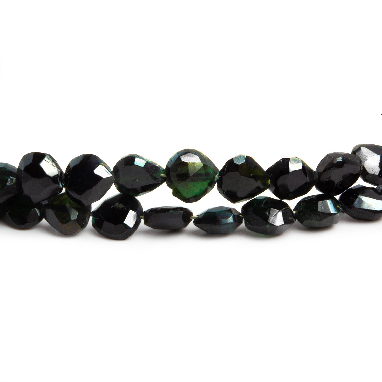These Green & Indicolite Tourmaline Faceted Heart Beads radiate depth and richness, with a striking blend of deep forest greens and inky blue-green hues. Each 5mm bead is expertly cut into a petite heart shape, with finely polished facets that create a subtle, elegant sparkle. The darker tones of these tourmalines reveal flashes of color in the light, offering a mysterious and refined beauty that sets them apart.