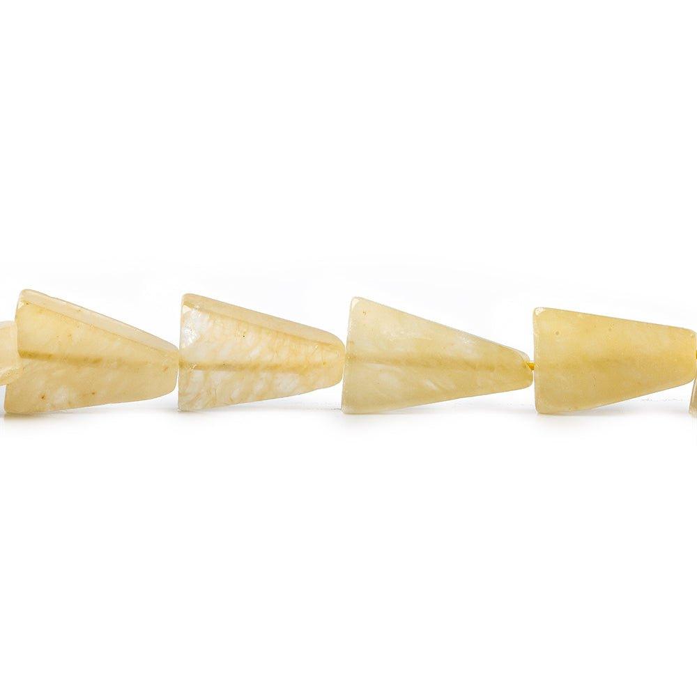 Yellow Aventurine Beads Plain Triangle has a warm yellow color, and is hand cut with slight variations for a unique look. It is 14 inch in length, with each bead measuring 12x10x4mm on average. The beads have an excellent polish for a smooth and glossy finish.