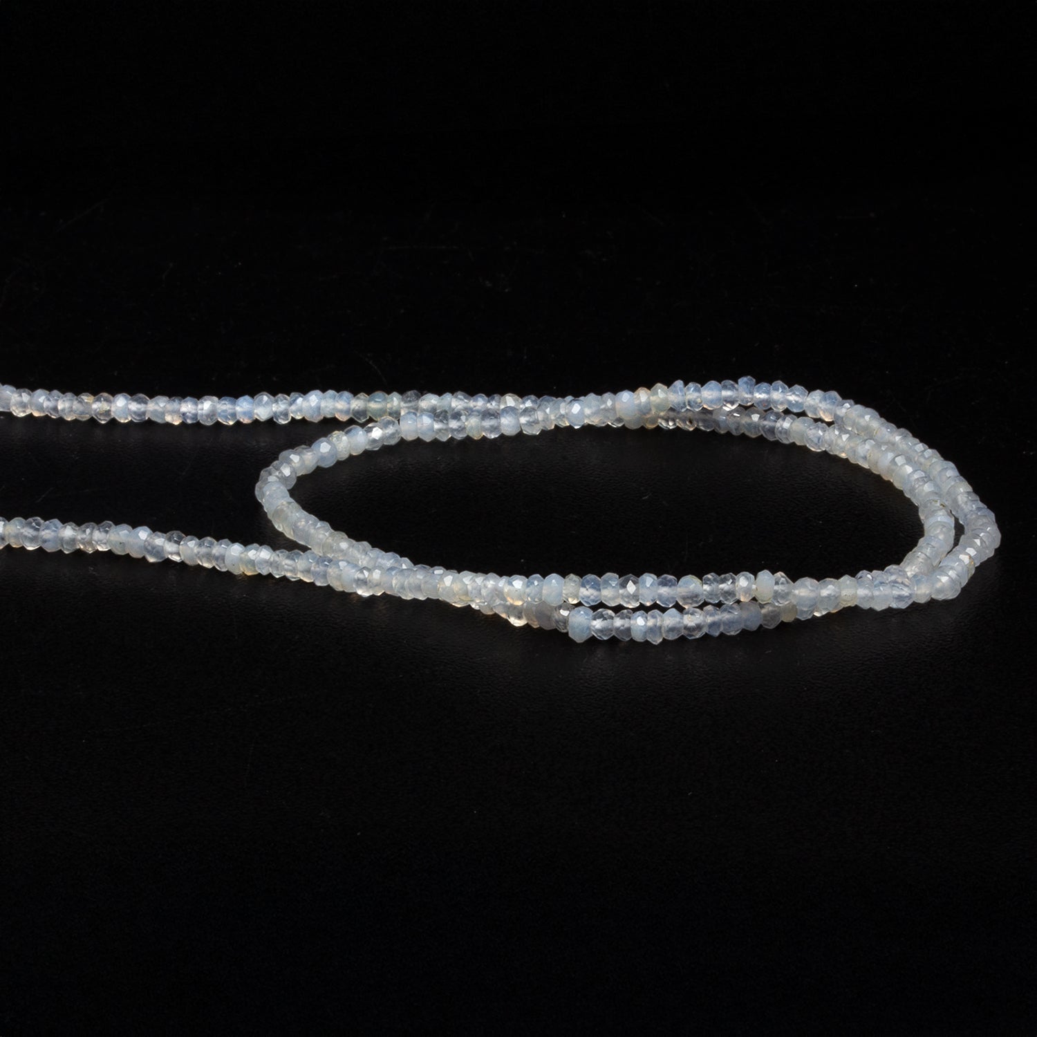 These Turkish Chalcedony faceted rondelles radiate a soft, ethereal glow with their subtle translucence and delicate bluish tones. Their petite 3mm size is perfect for creating refined, lightweight designs that carry an air of sophistication. Each bead is hand-cut with fine facets that catch the light gently, giving just the right amount of shimmer without overwhelming their naturally serene beauty.
