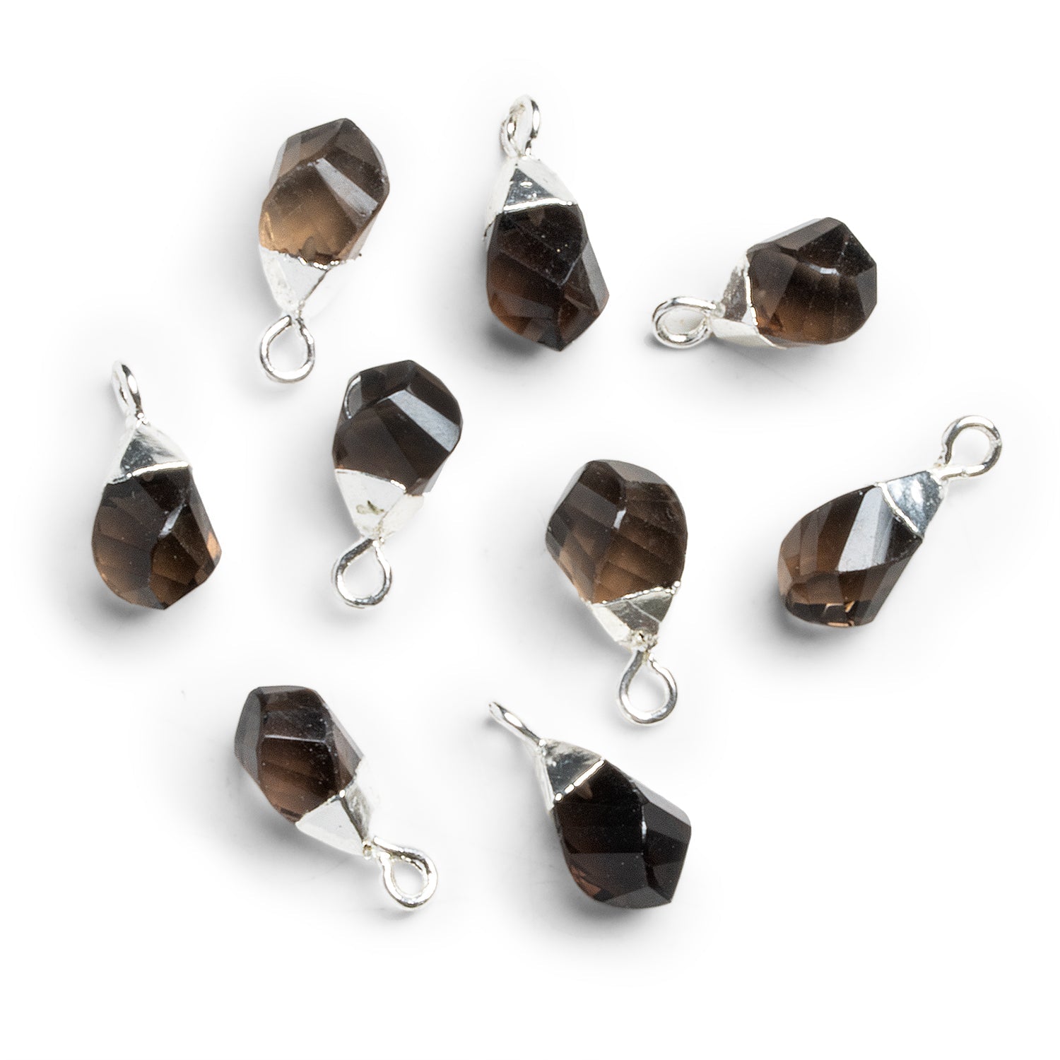 Beads average about 15x7mm. These exquisite little pendants show off a sleek and unique faceted twist shape that looks great paired with our signature silver leaf. Imbue your designs with an air of elegance and sophistication with these classy pendants ideal for use in necklaces, earrings and more.