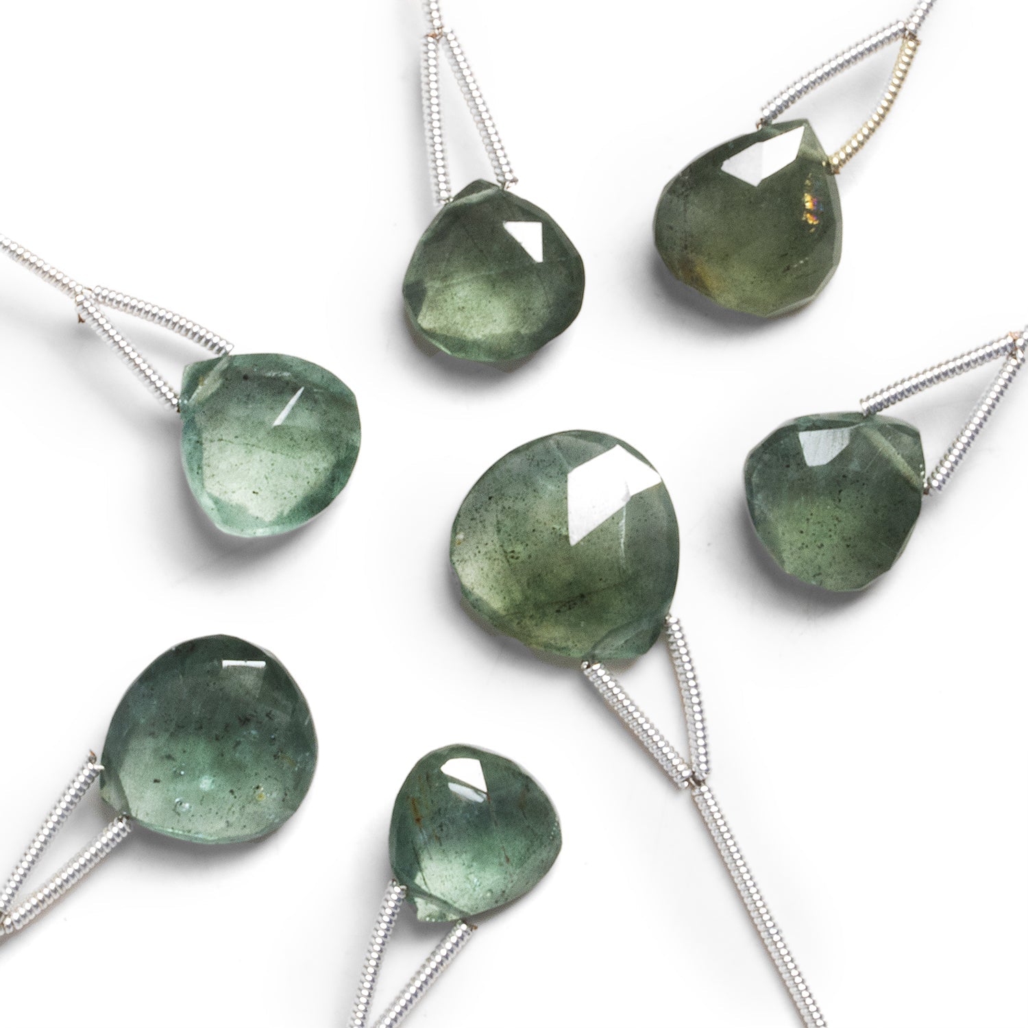 Beads measure about 10mm to 14mm in diameter. These stunning beauties feature a blue-green Moss Aquamarine palette with excellent clarity textured with the mossy texturing that gives this unique gemstone its moniker. Jewelry Designers looking for a richly colored piece to bring a design together should go for these high-quality offerings, ideal for use as the focal point of a necklace, a matching pair of earrings and more!