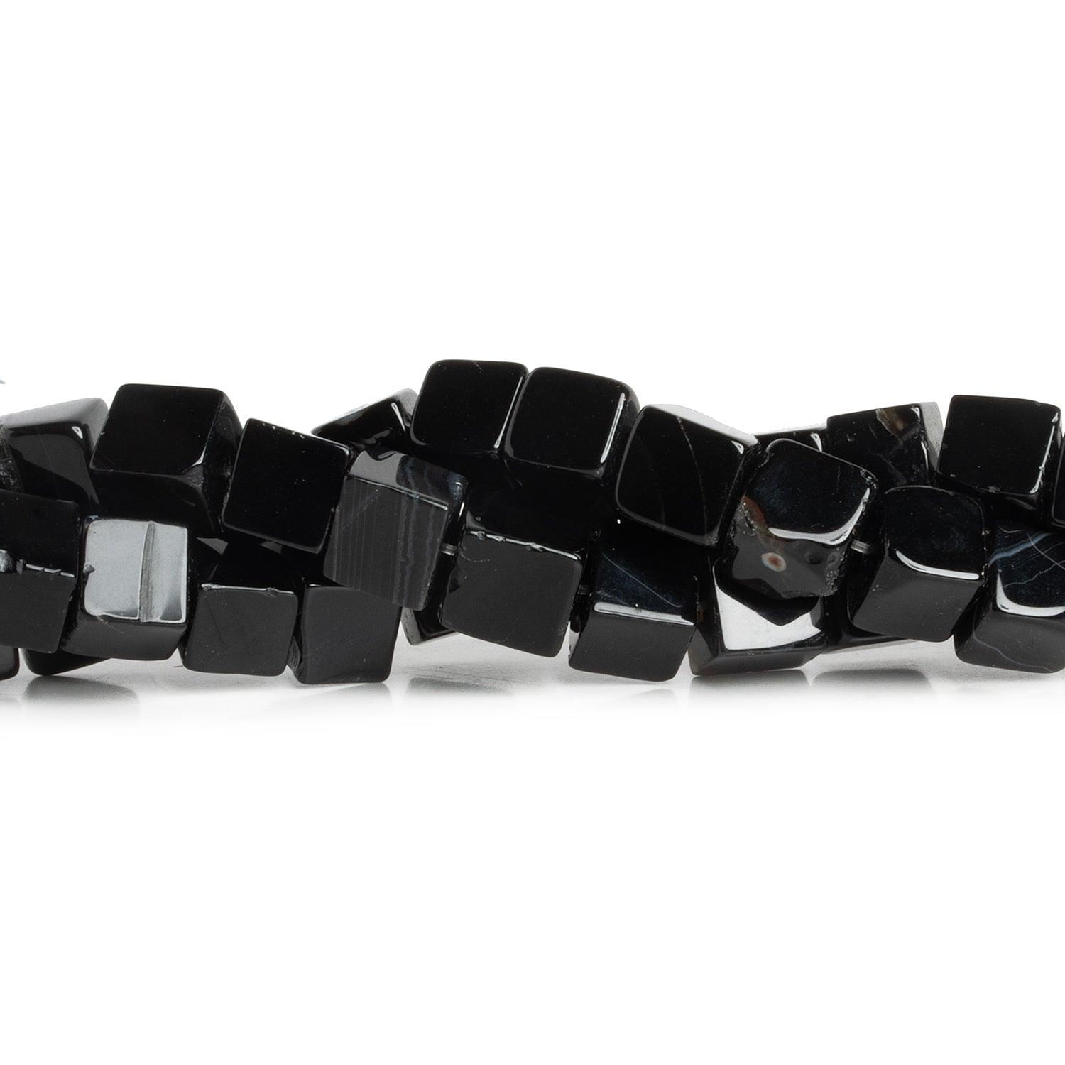 Beads average about 10mm in diameter. These beads show off jet-black bodies with some textural elements and patterns evident.