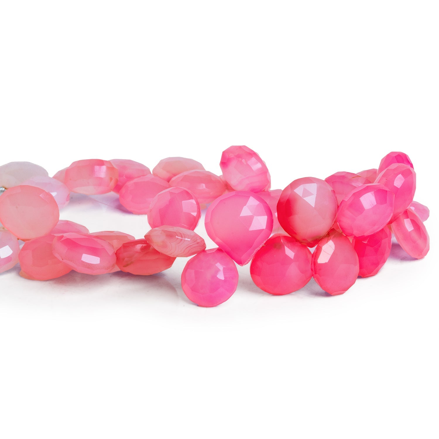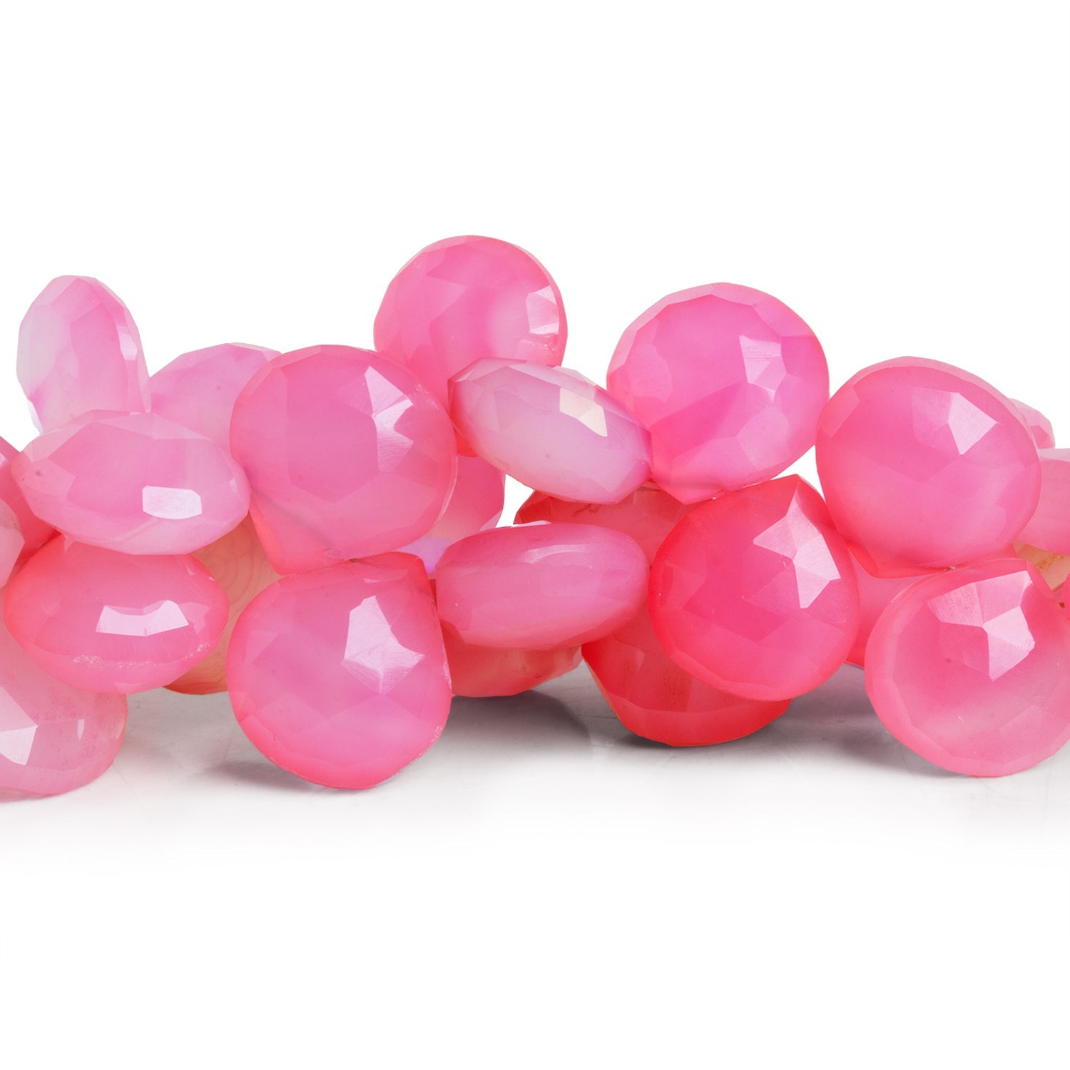Their unique heart shape makes them perfect for creating meaningful, romantic jewelry pieces, whether used as a statement centerpiece or scattered throughout a design. The soft pink tones, paired with the faceted finish, lend themselves to both playful and elegant creations, making them versatile for a variety of styles. Whether incorporated into necklaces, bracelets, or earrings, these Pink Chalcedony Faceted Heart Beads are sure to add a lovely pop of color and charm to your designs.