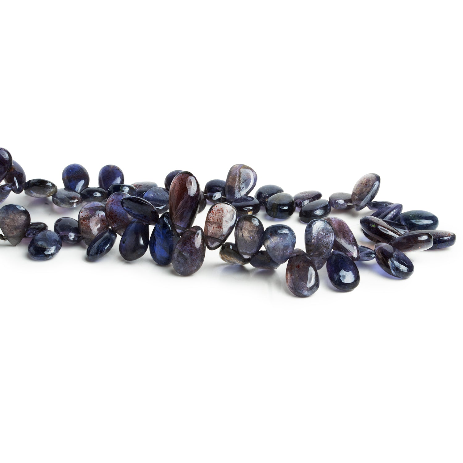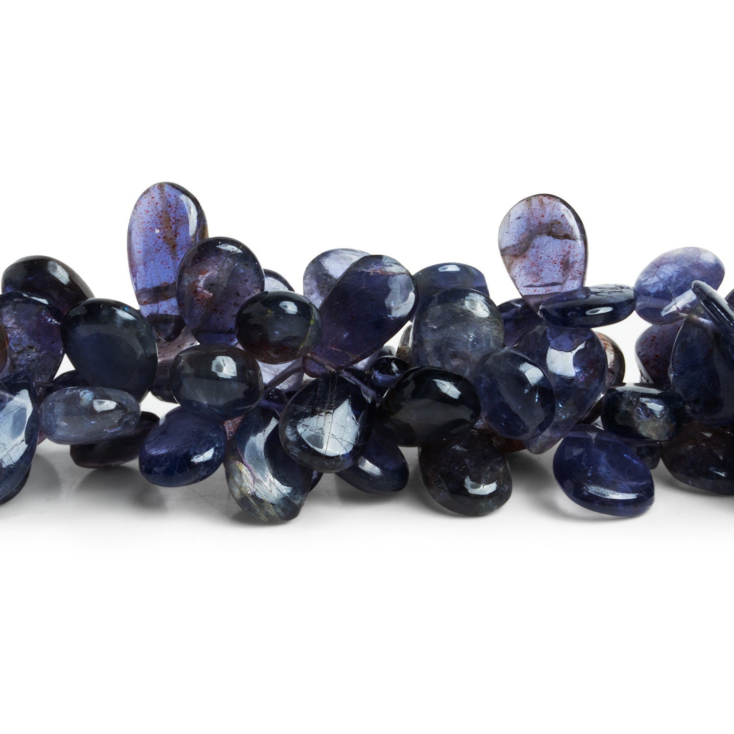 These Iolite Plain Pear Beads feature a beautifully rich, inky violet-blue tone characteristic of high-quality Iolite, highlighted by its natural pleochroism—shifting hues when viewed from different angles. Each pear-shaped bead is smoothly polished, showcasing a range of subtle variations in shape and saturation, with average measurements around 11x7mm.