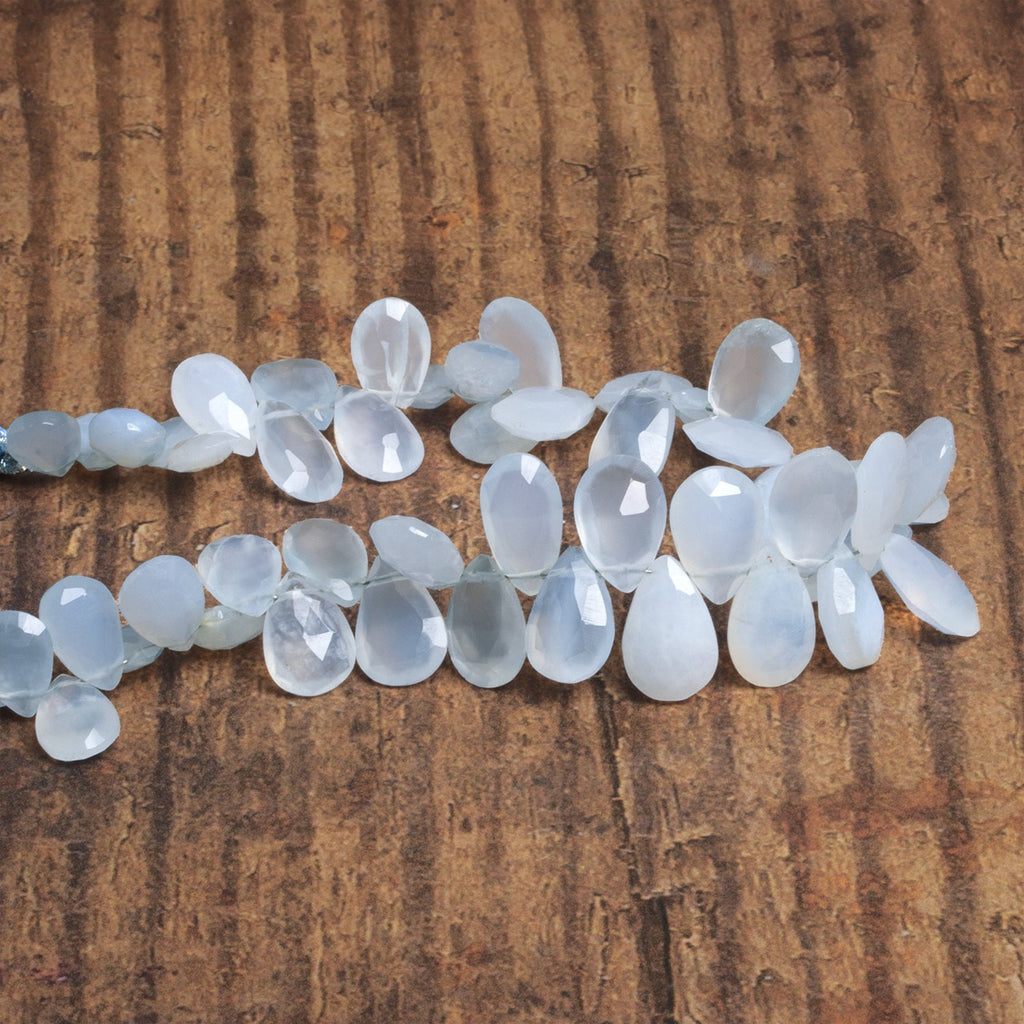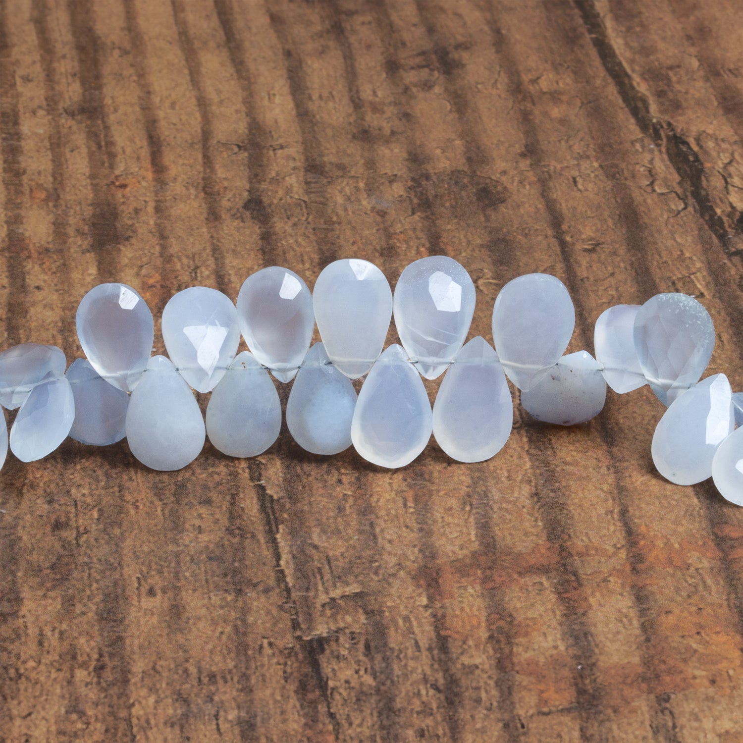 Beads range from about 8x7mm to 14x9mm. These gorgeous, curated strands feature light and milky natural chalcedony on sizable, masterfully faceted pears. Fans of Turkish Chalcedony should jump on these stylish and elegant pieces ideal for use in necklaces, earrings and any other Jewelry Design applications.