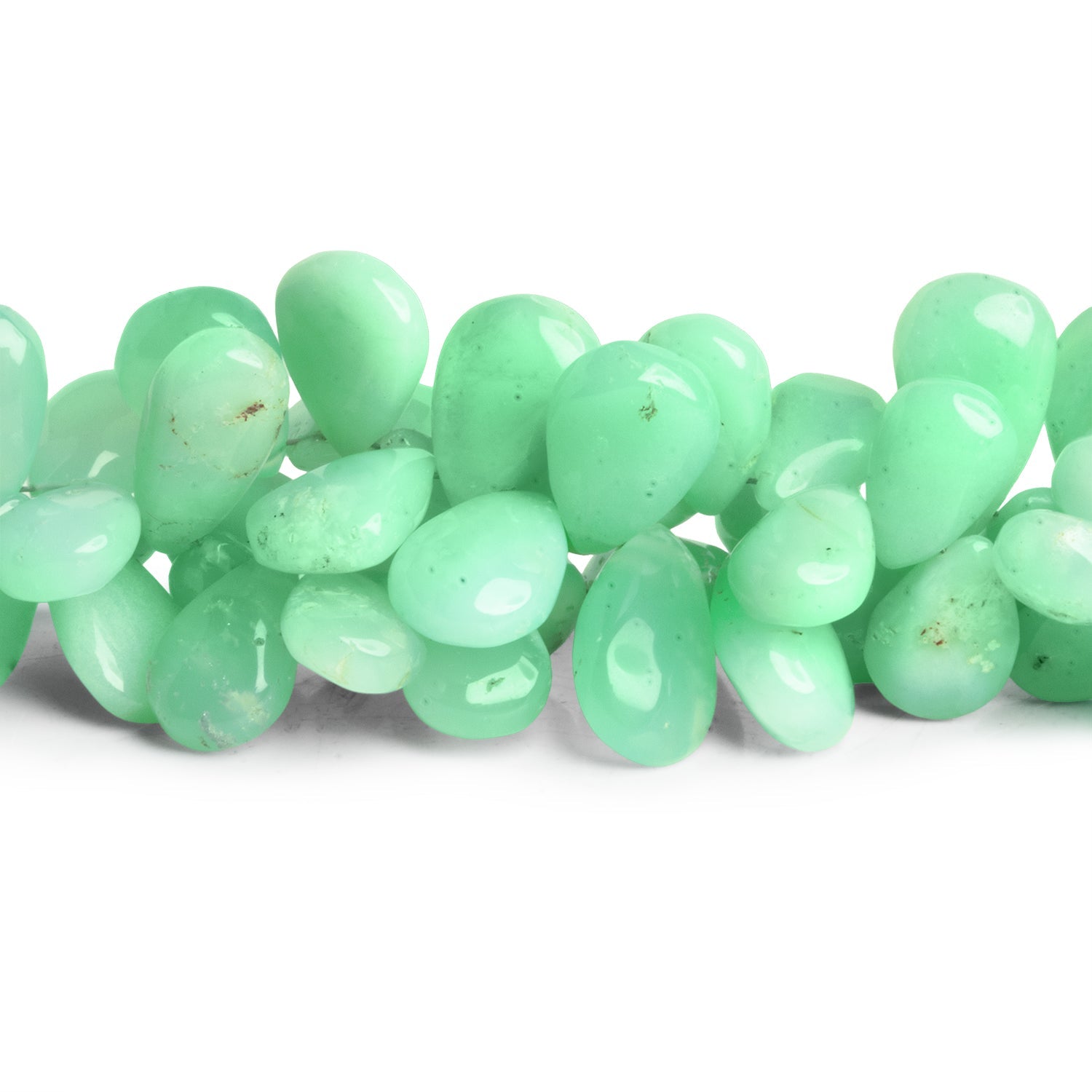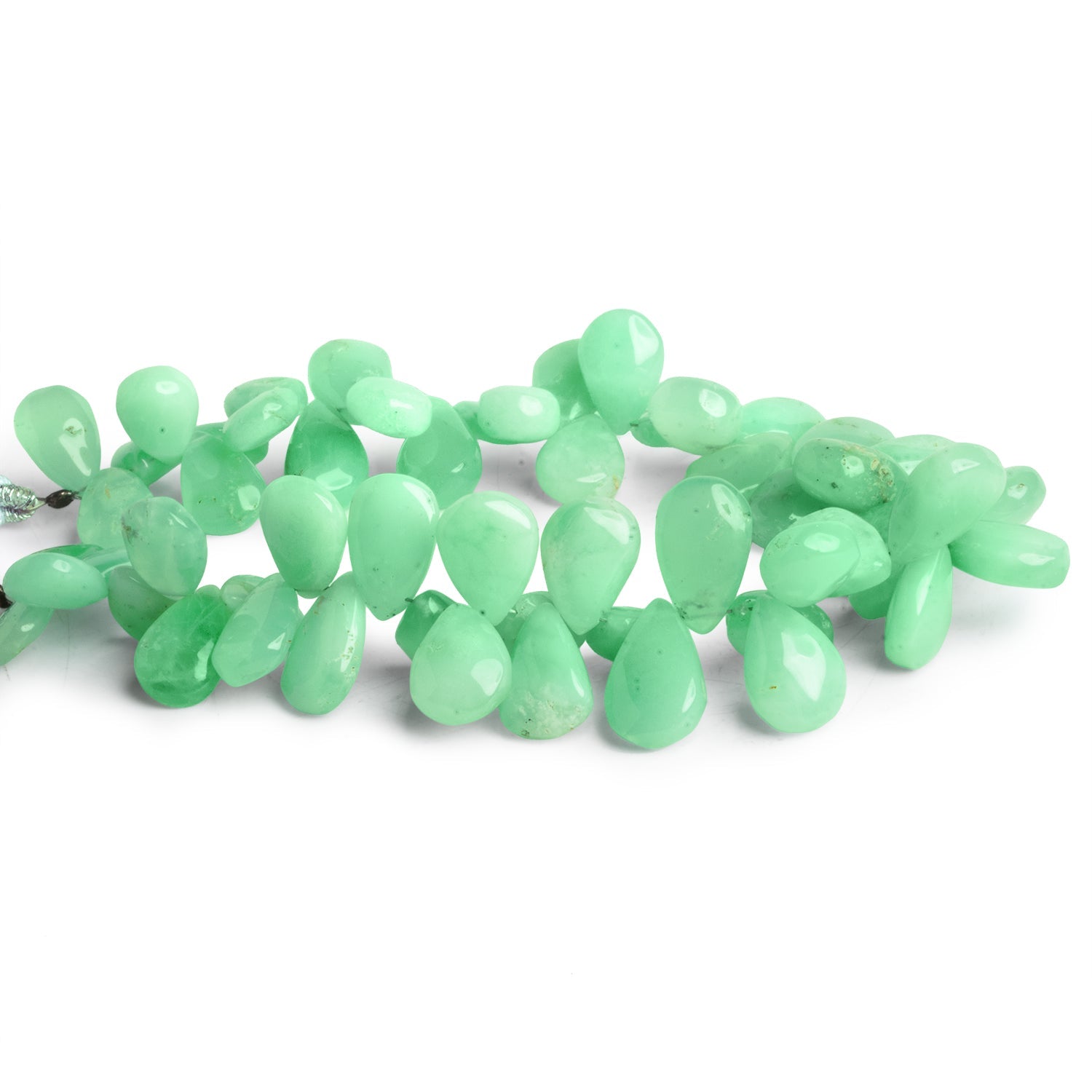 Saturated with an invigorating mint-green hue, these Chrysoprase Plain Pear Beads offer a beautifully balanced range of sizes from approximately 10x7mm to 13x9mm. Each stone is smoothly polished to accentuate the natural luster of high-quality Chrysoprase, revealing soft translucency and faint, earth-toned inclusions that authenticate their natural origin. Their iconic teardrop silhouette makes them ideal for elegant earrings, clustered pendants, or botanical-inspired necklaces.