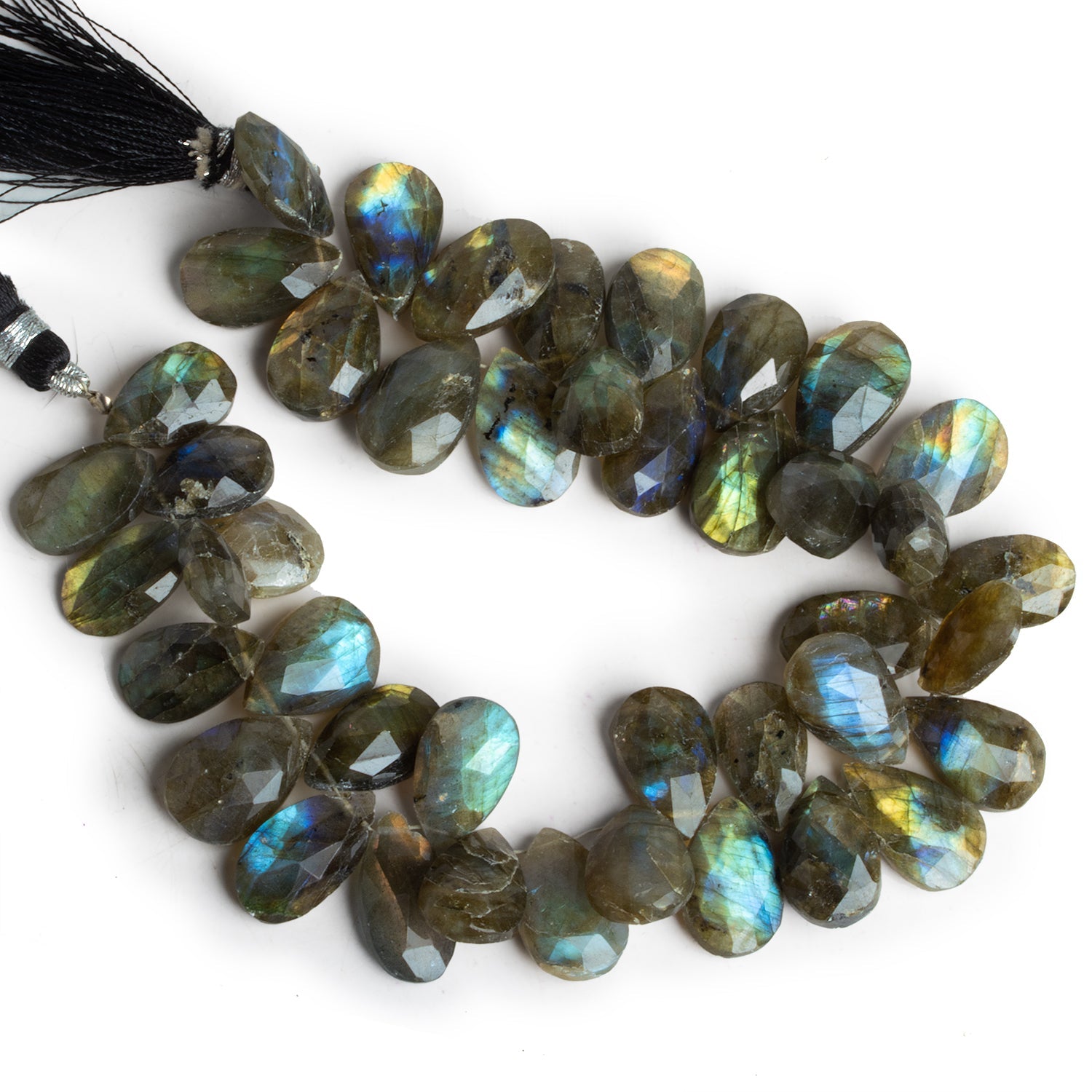 These Labradorite Faceted Pear Beads are a stunning choice for creating unique and visually captivating jewelry. Ranging from approximately 13x9mm to 16x10mm in size, each bead boasts a pear shape that enhances its elegant, natural beauty. The beads are faceted, which allows the Labradorite’s natural iridescence to shine, creating a mesmerizing effect as the light reflects off their surfaces.