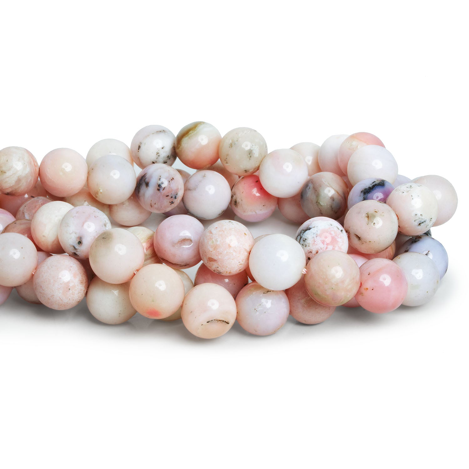 These curated strands feature a wide ranging Pink Peruvian Opal color palette that incorporates offwhites. creamy tones, soft pinks across masterfully crafted plain round pieces. Fans of Pink Peruvian Opal will want to jump on these exquisite pieces curated for their superior quality and light hues.