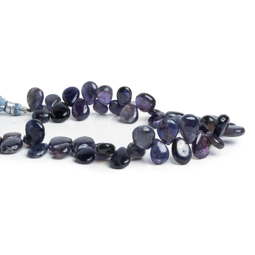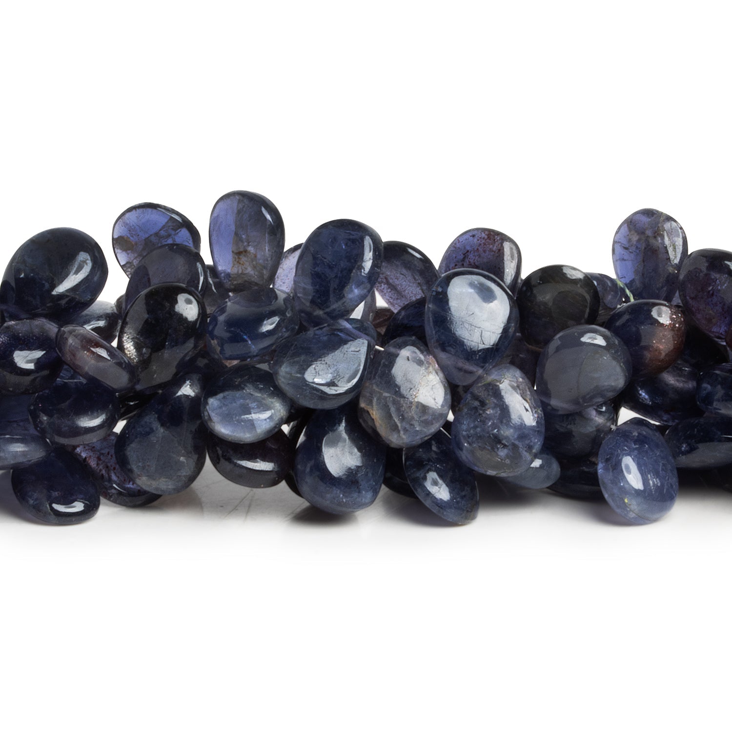These Iolite Plain Pear Beads, measuring 10x6mm to 15x10mm, display the rich, deep hues that make iolite a sought-after gemstone. The beads feature smooth, polished surfaces that allow their naturally stunning colors to shine through—ranging from deep violet to bluish hues. What's even more captivating is the subtle sparkling effect from the occasional bits of sunstone embedded within the beads. These flecks of sunstone shimmer under light, adding a unique layer of depth and dimension to each bead. Perfect for those seeking an elegant and slightly mystical touch, these beads would make a striking addition to any jewelry design, especially when paired with complementary metallic tones or other gemstone accents.