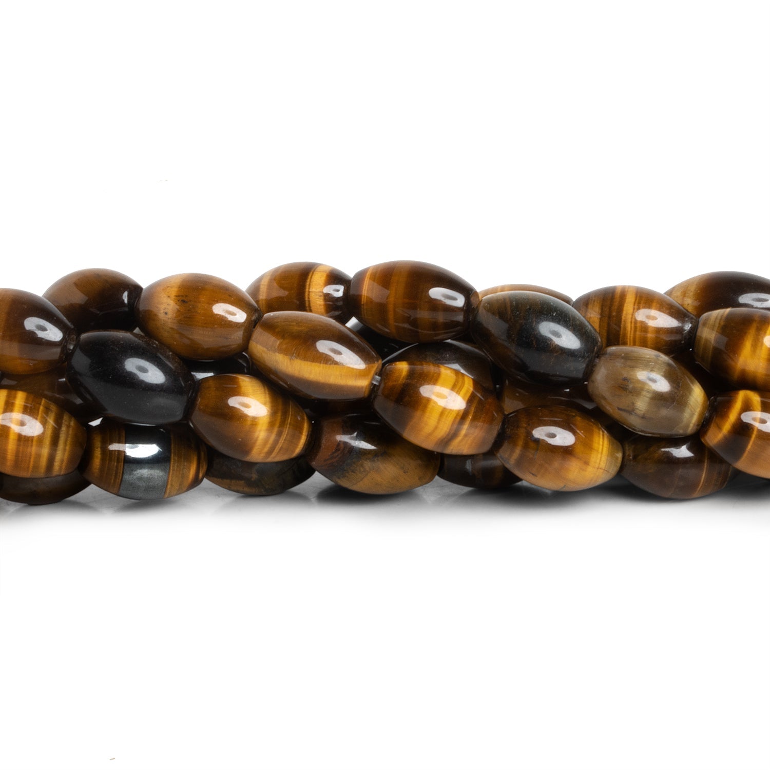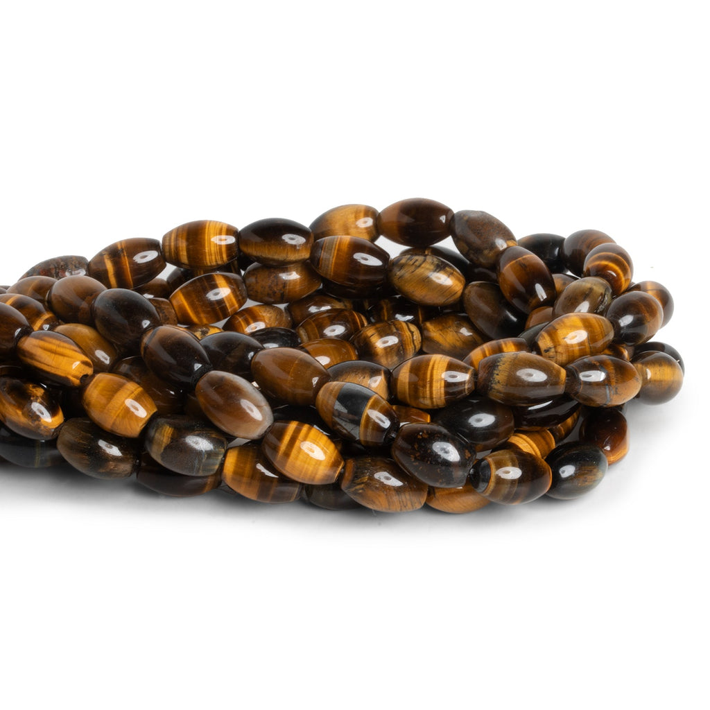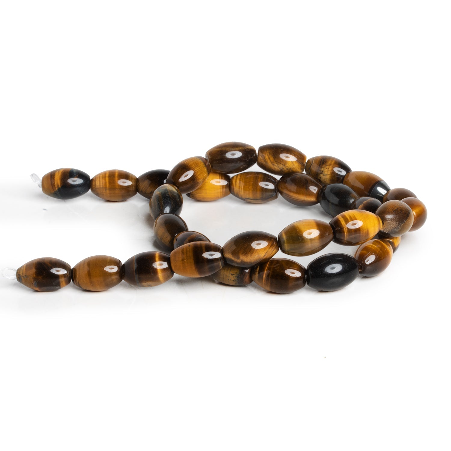 Beads measure about 12x8mm with about a mm of variation possible. These dazzling beads are indicative of high-grade Tiger's Eye, brimming with the gemstones signature flashy Cat's Eye effect. The smooth polished barrel shape is ideal for showing off this strong optical effect that makes these beads ideal for all eye-catching Jewelry designs from necklaces to bracelets and earrings.