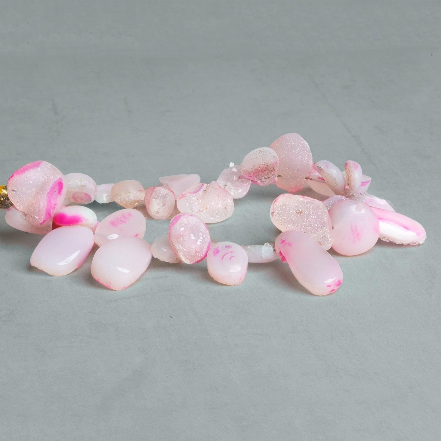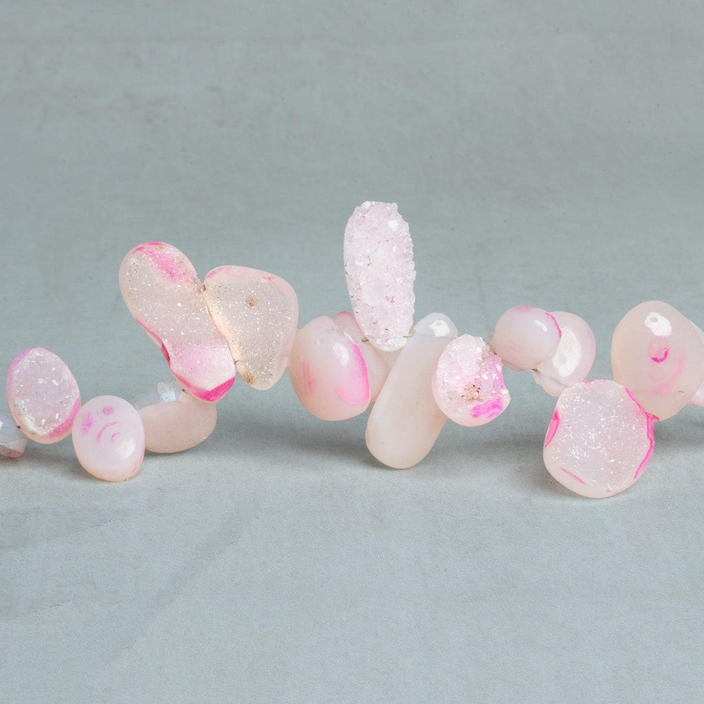 Beads measure from about 9x6mm to 16x12mm. This strand features a smooth polished nuggets with one side featuring gorgeous sparkling Drusy. Expect a color palette full of swirling off whites and hot pinks.