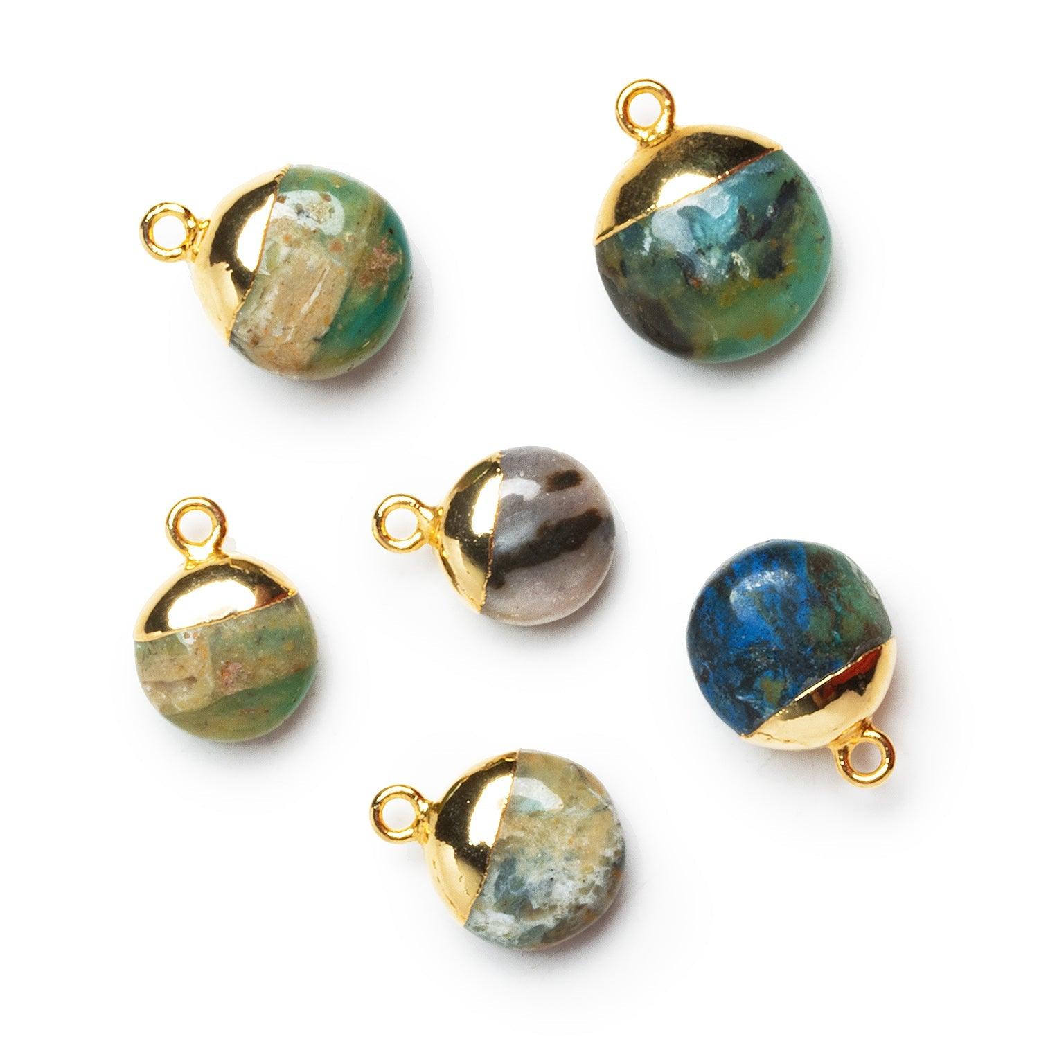 13mm Gold Leafed Blue Peruvian Opal Coin Pendant 1 Bead