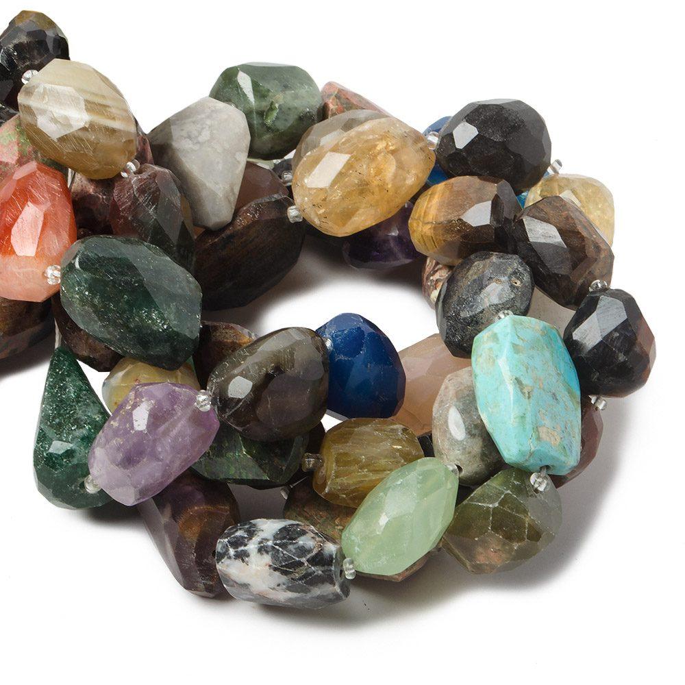 15 inch strand of approximately 19 beads measuring varied sizes from 14x11x10mm up to 21x14x10mm Each strand has differing and assorted gem varieties