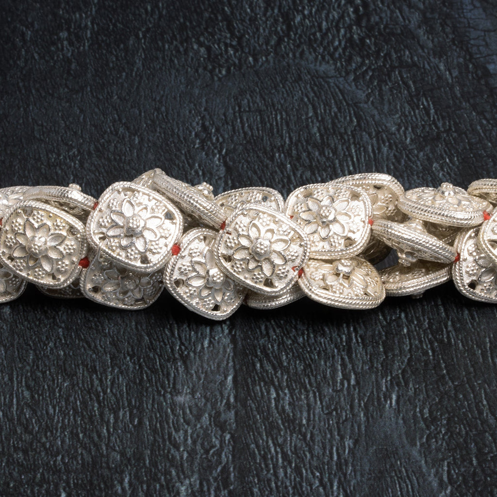 Introducing our exquisite Sterling Silver plated Copper Floral Cushion Beads, where sophistication meets versatility. Crafted with meticulous attention to detail, each bead features an ornate Floral design on broad cushion shapes that catch the light beautifully, adding a touch of glamour to your jewelry creations. Elevate your designs with the timeless charm and luxurious allure of our Sterling Silver plated Cushion, perfect for bringing together necklaces, earrings, bracelets and much more!